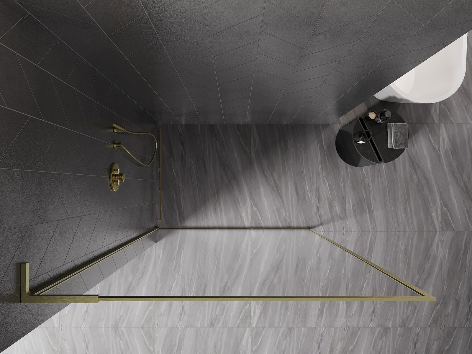 Mexen Kioto-F L Walk-in Shower Wall with Frame 90 x 202 cm, Transparent 8 mm, Brushed Gold - 800-090-174-55-00