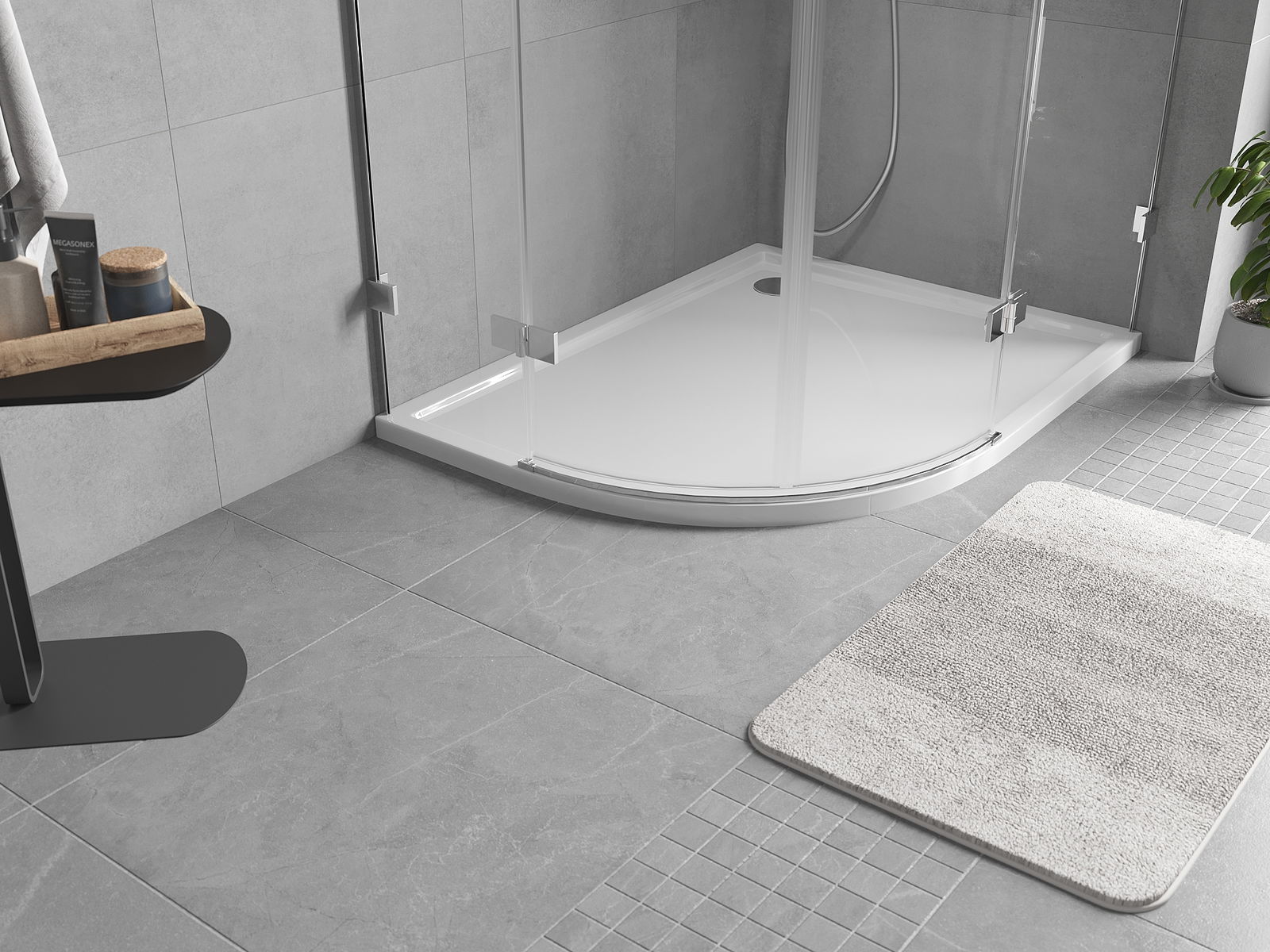The shower tray is designed in such a way that water can freely flow towards the drain. It ensures quick and effective drainage of water from the surface of the shower tray, preventing the formation of puddles and flooding the bathroom.