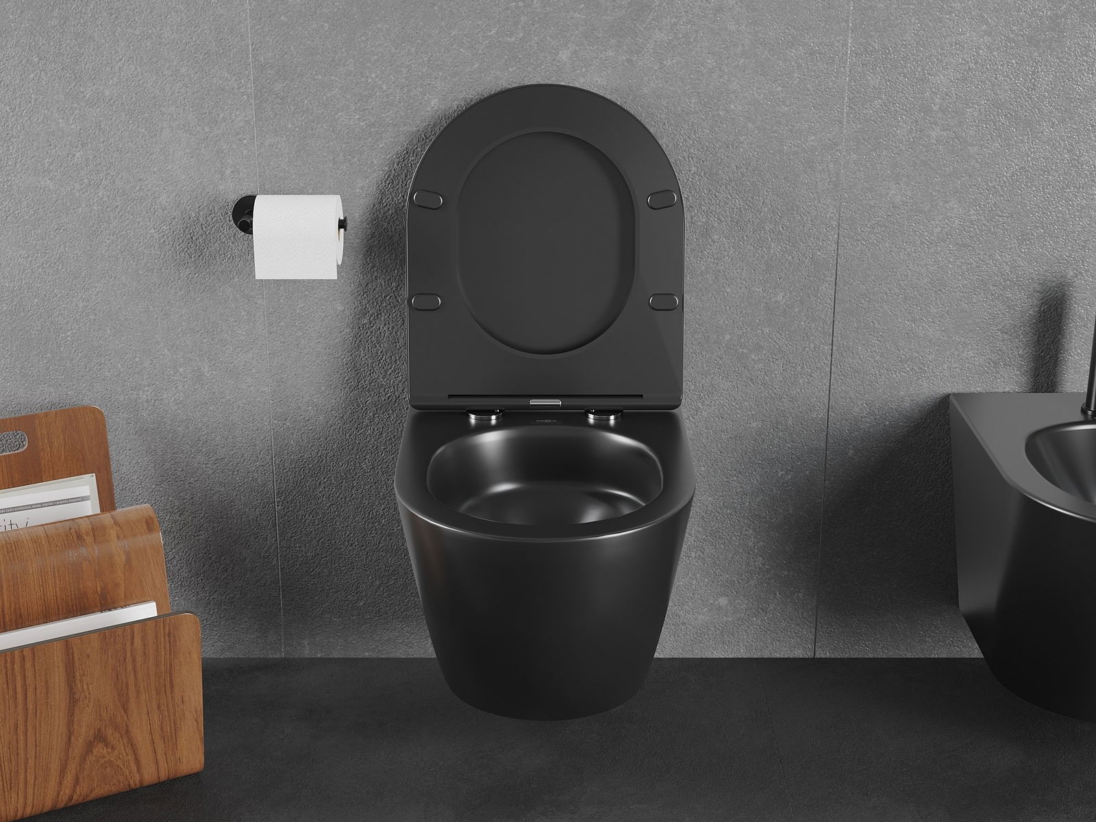 Mexen Lena rimless Tornado toilet bowl with slim soft-close seat, duroplast, black matte - 30221085T