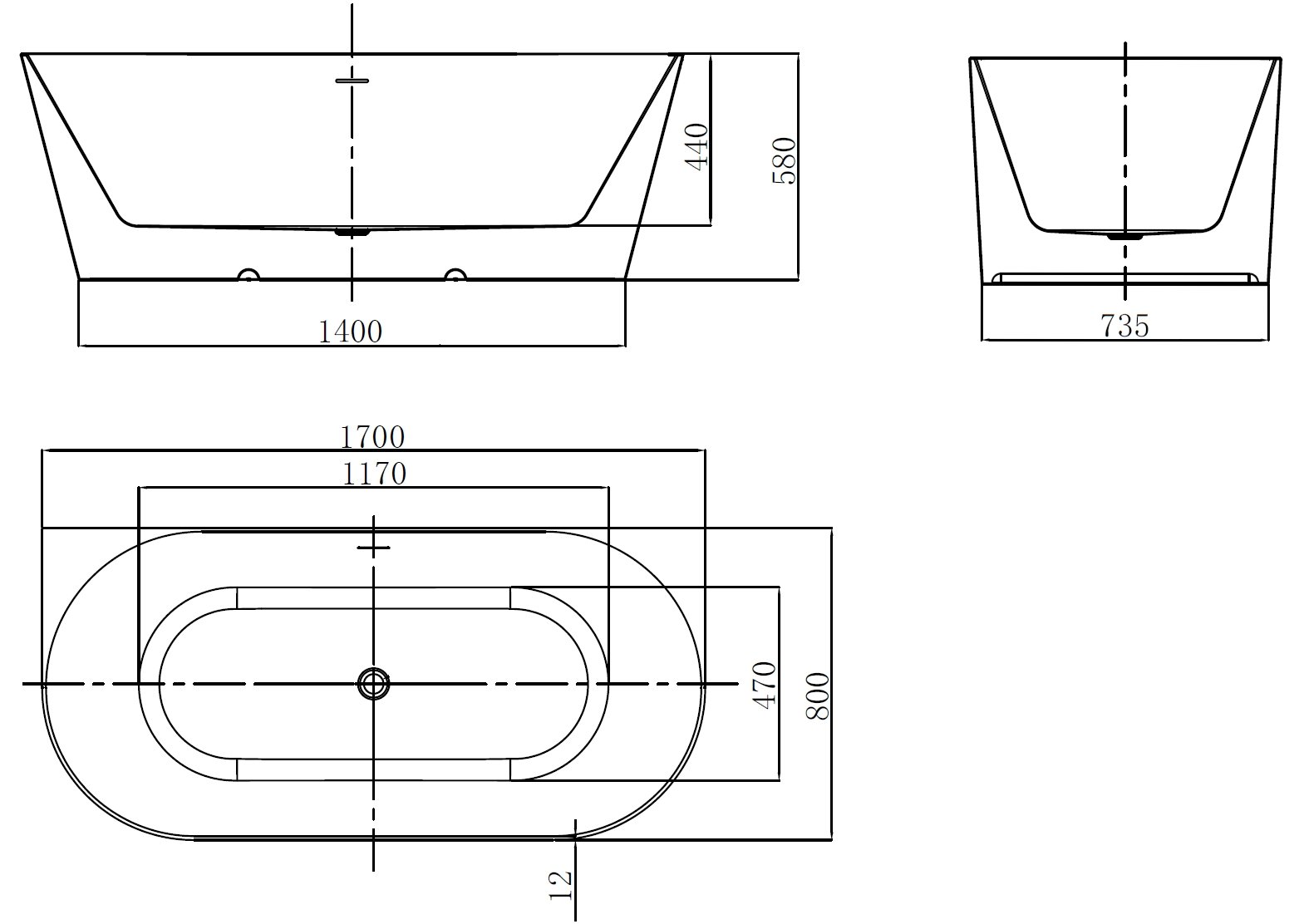 Mexen Oval Slim freestanding back-to-wall bath 170 x 80 cm, white, overflow gun metal - 52661708000-95