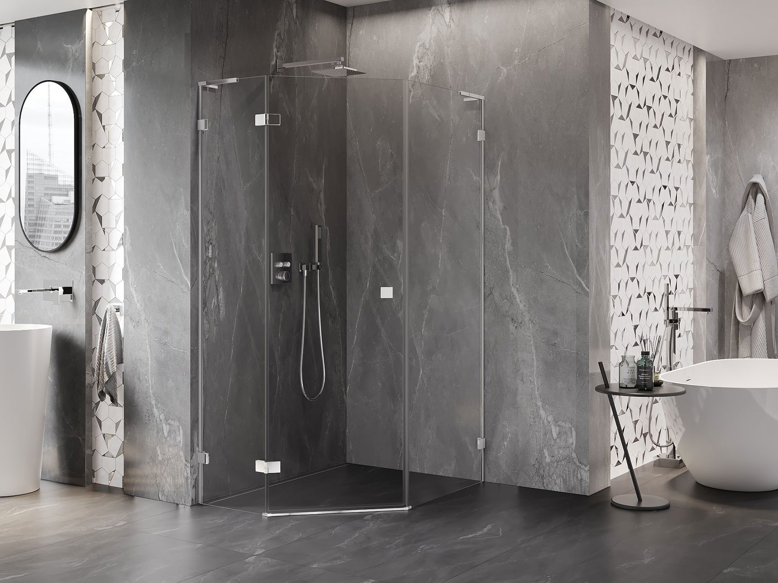 The handy and comfortable handle is made of durable and resistant metal. The fashionable shape, combined with a finish matching the color of the profiles, gives the whole a modern and stylish look, emphasizing the aesthetics of any bathroom.
