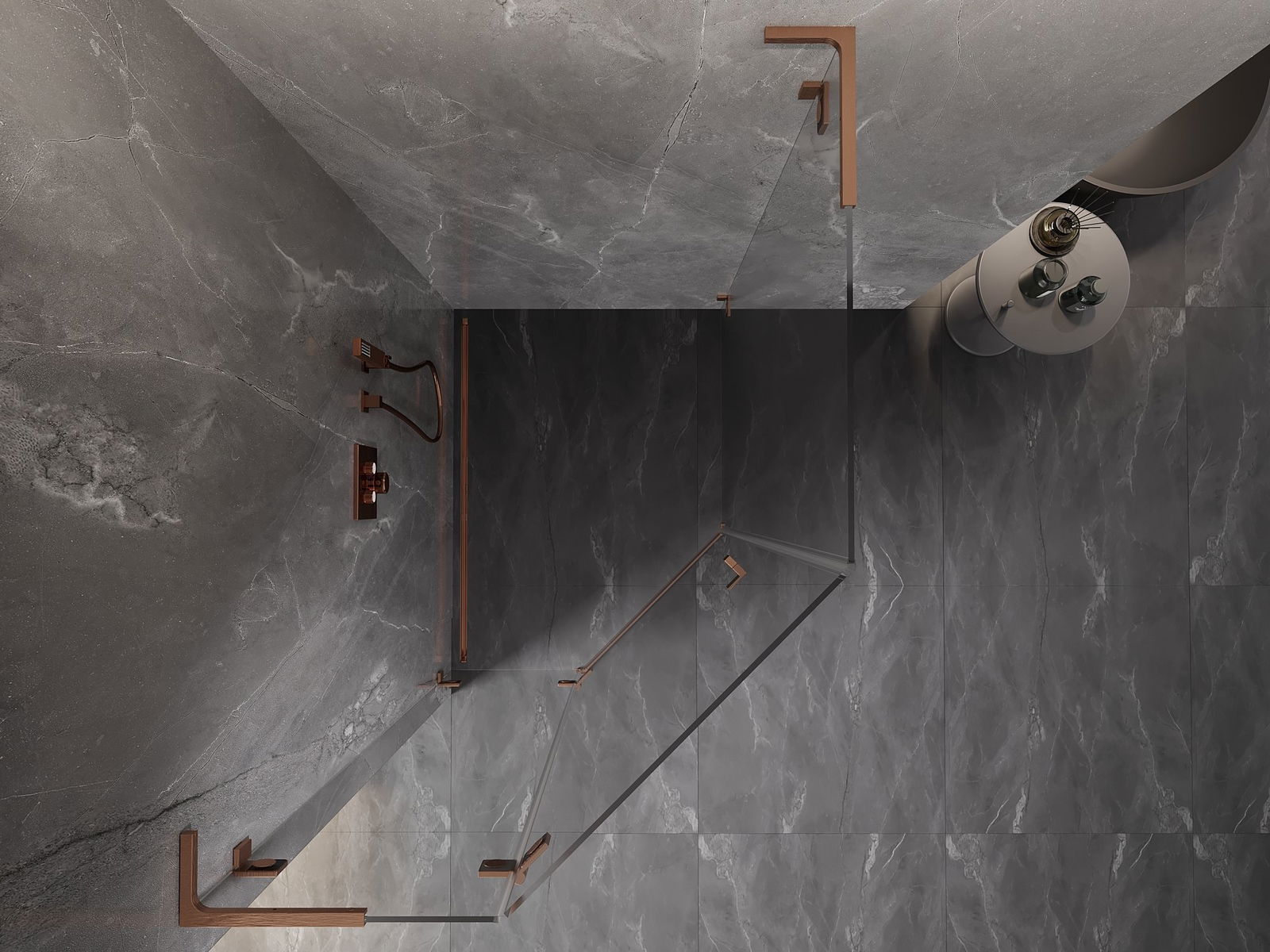 Mexen Lunar L pentagonal shower enclosure left swing door 80 x 90 cm, transparent, brushed copper - 831L-080L-090P-65-00-L