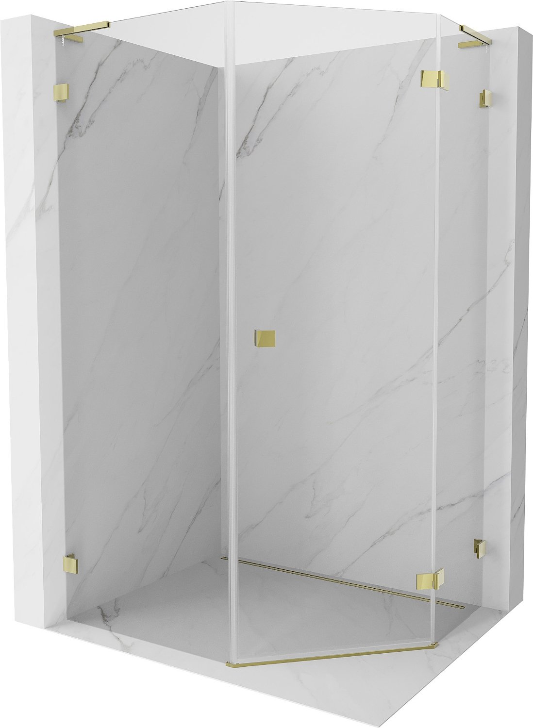Mexen Lunar L pentagonal right-hinged shower cabin 80 x 100 cm, transparent, gold - 831L-080P-100L-50-00-P