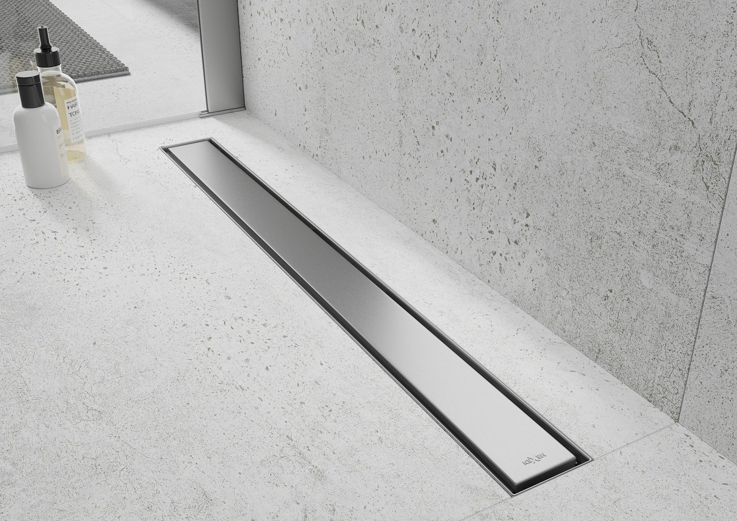 The linear drain is mounted at a depth of only 52 mm. The low depth allows for easier surface preparation for the drain installation and easy leveling, ensuring high aesthetics and effective water drainage.