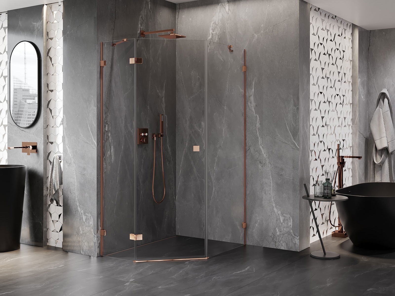 Mexen Lunar pentagonal hinged left shower enclosure 80 x 100 cm, transparent, pink gold - 831-080L-100P-60-00-L