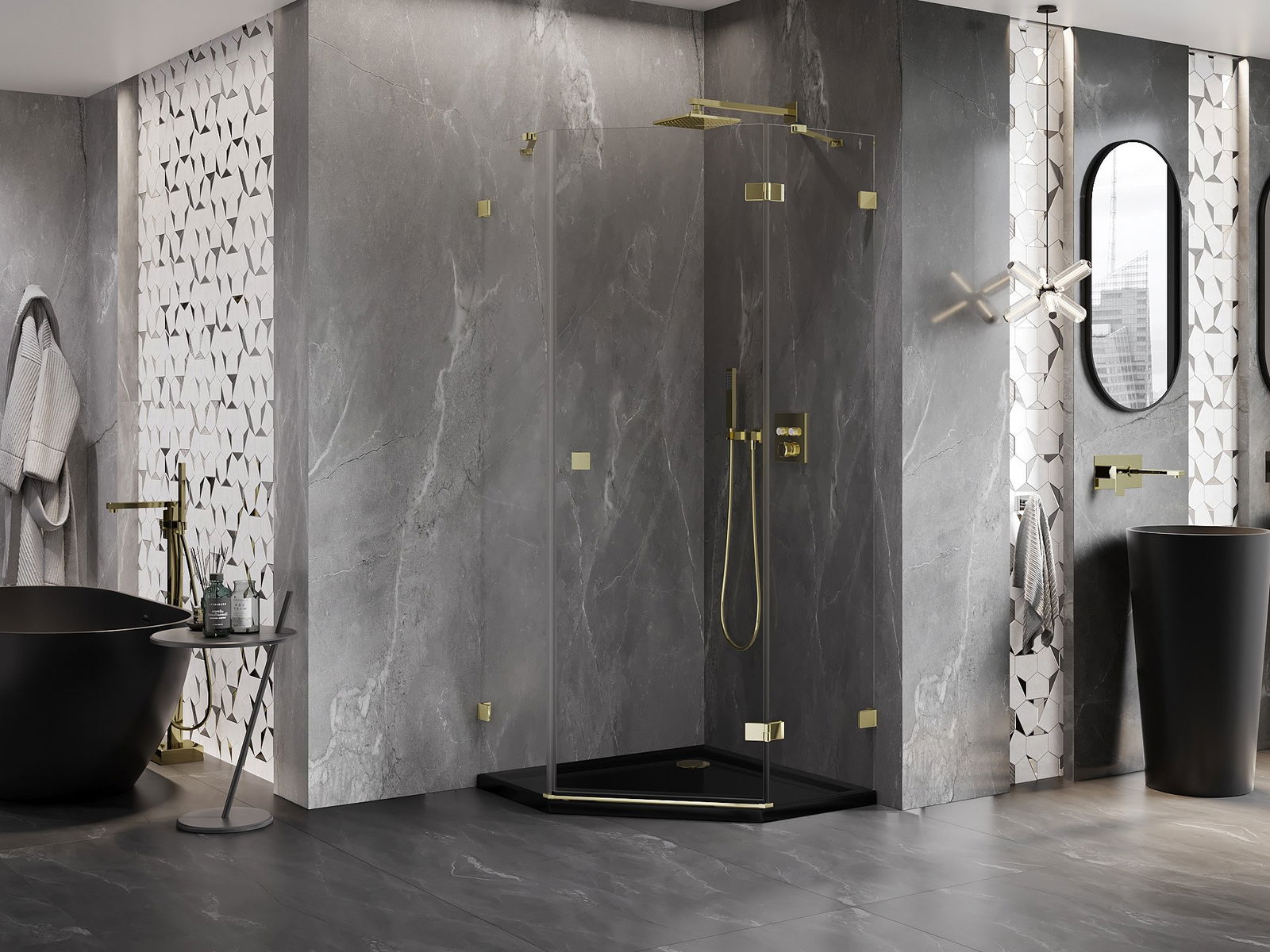 Mexen Lunar pentagonal shower enclosure, right hinged 80 x 80 cm, transparent, gold - 831-080P-080L-50-00-P