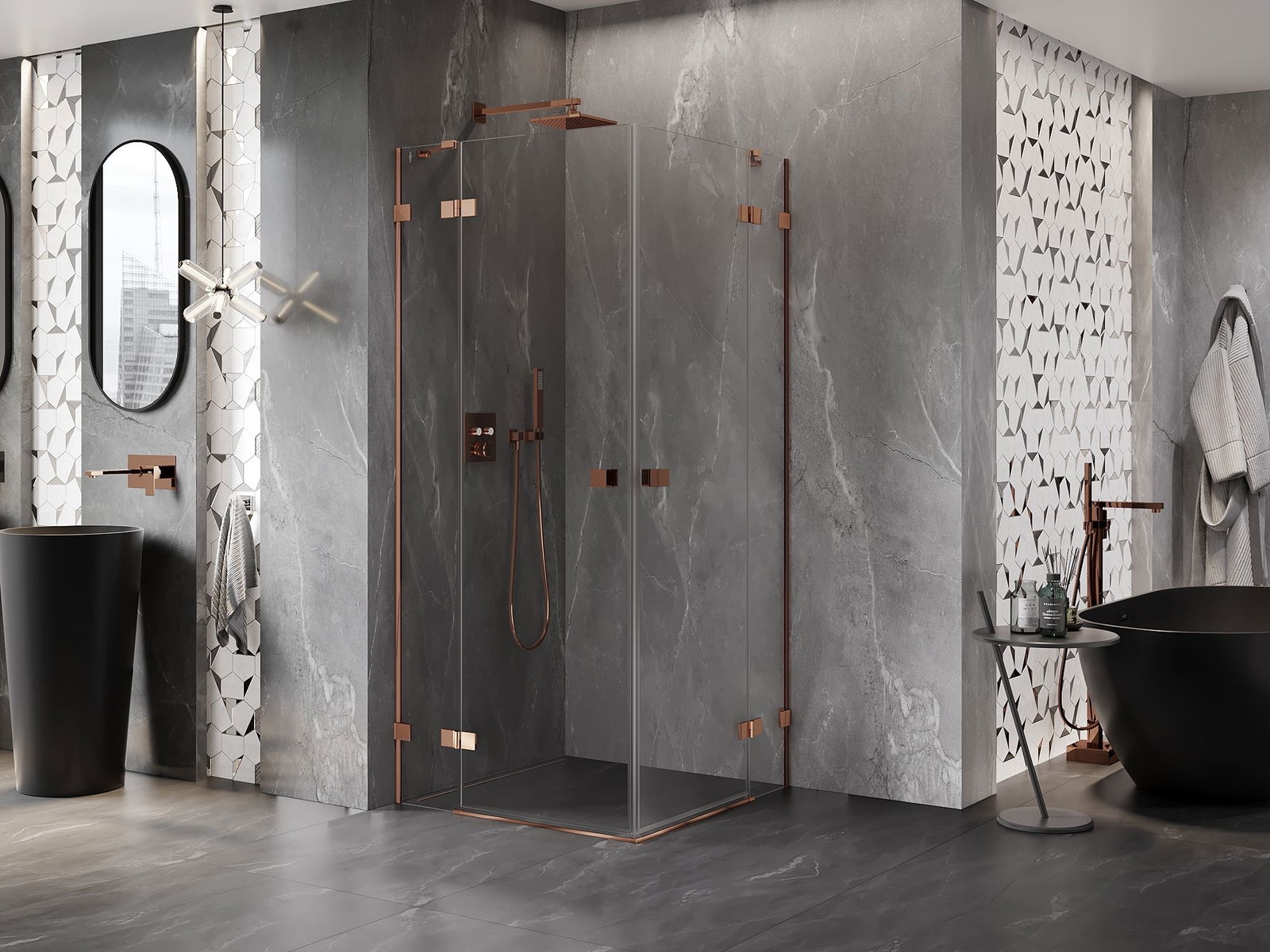 Mexen Lunar Duo hinged shower enclosure 100 x 100 cm, transparent, rose gold - 834-100L-100P-60-00