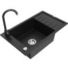Mexen Elias granite sink 1-bowl with drainer and Telma kitchen tap, black/silver - 6511-73-670200-70