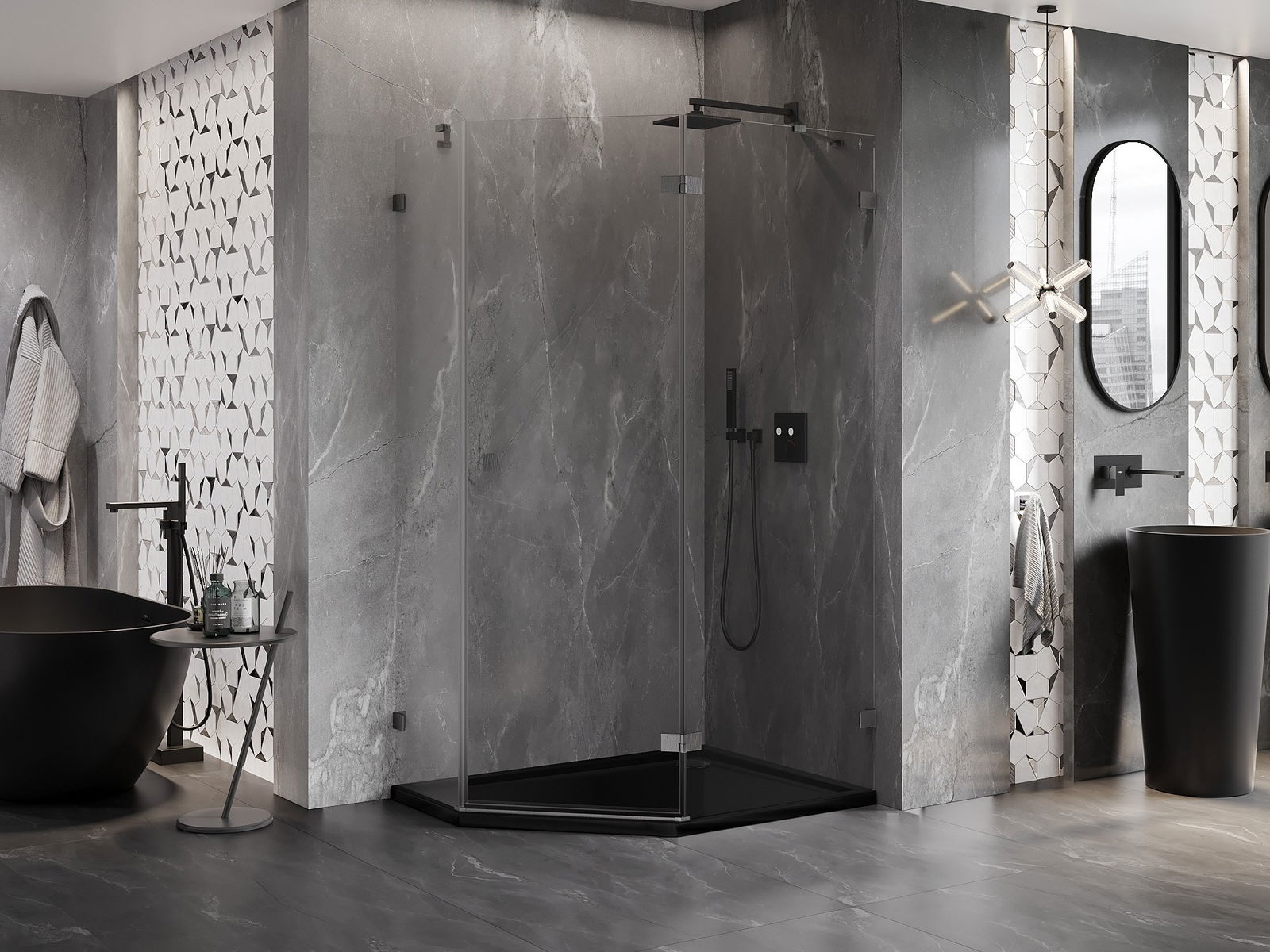 Mexen Lunar pentagonal hinged shower enclosure right 100 x 80 cm, transparent, brushed gun gray - 831-100P-080L-66-00-P