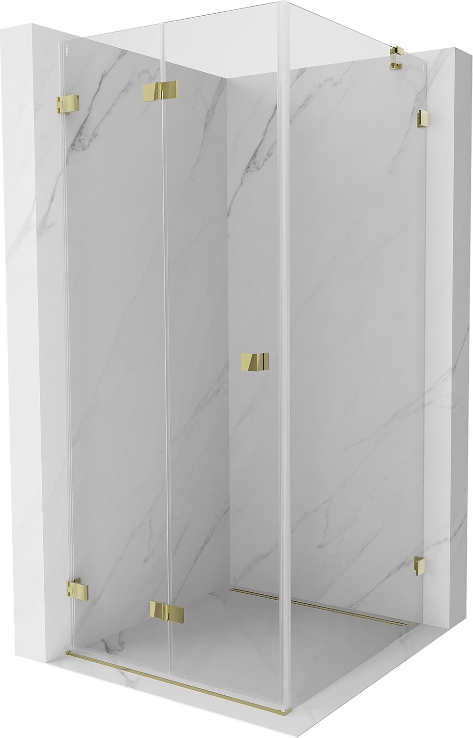 Mexen Lunar-F 70 x 70 cm Folding Shower Enclosure Left, Transparent, Gold - 836-070-070-50-00-L