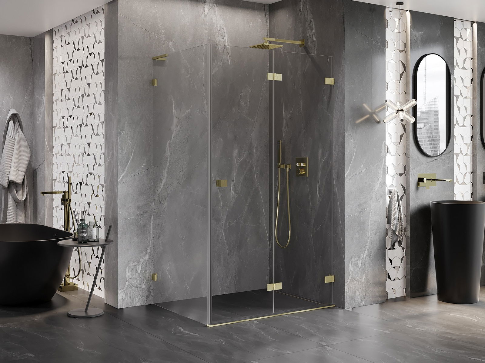 Mexen Lunar-F L right foldable shower enclosure 75 x 70 cm, transparent, brushed gold - 836L-075-070-55-00-P