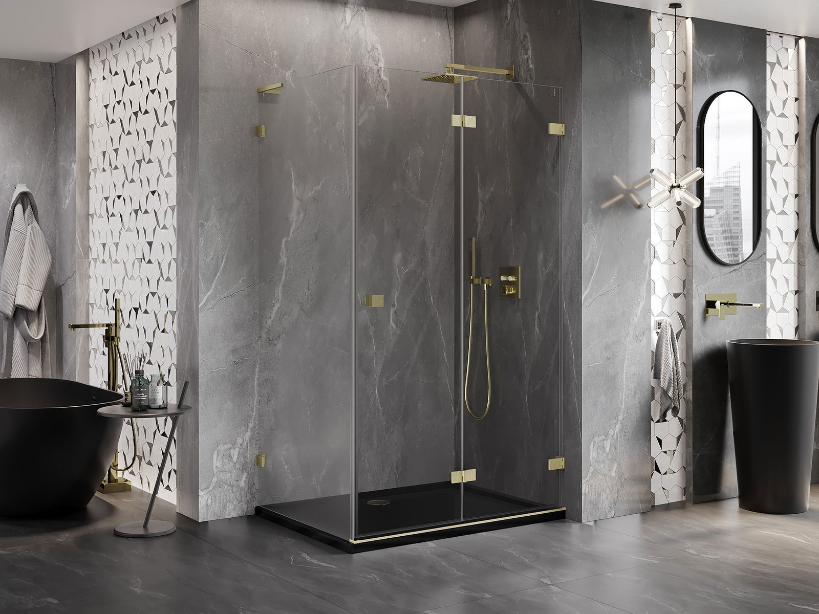 Mexen Lunar-F L foldable shower cabin right 100 x 90 cm, transparent, brushed gold - 836L-100-090-55-00-P