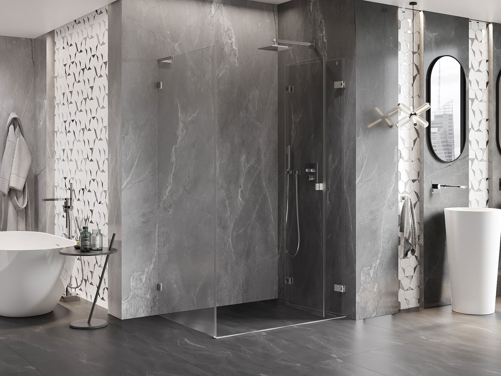 A handy and comfortable handle made from durable and resistant metal. Its trendy shape combined with a finish matched to the colour of the profiles gives the whole a modern and stylish look, highlighting the aesthetics of every bathroom.
