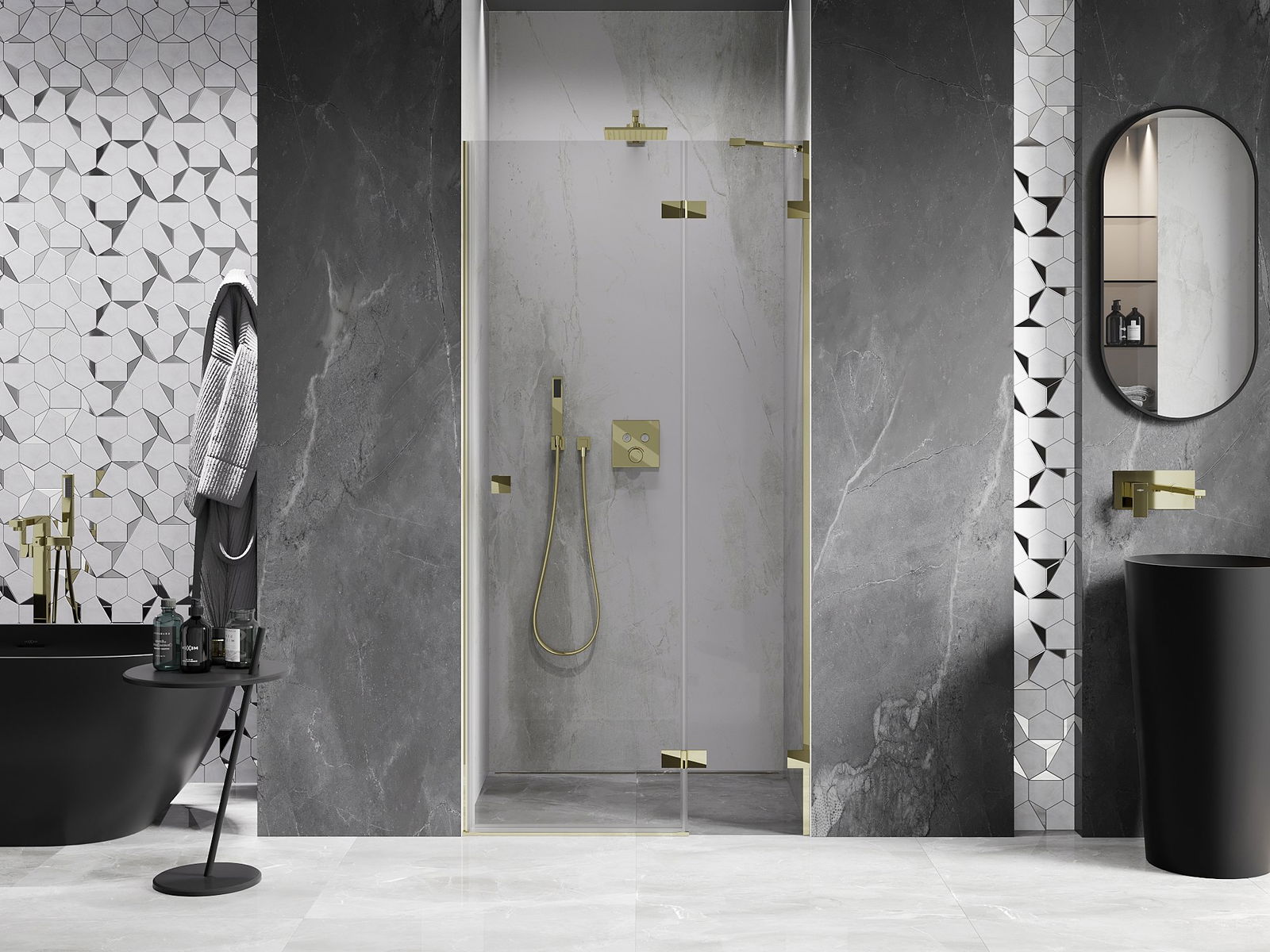 Clamps and hinges are made from very durable brass, additionally creating a flush glass surface. This is an excellent choice that combines elegance, durability, and modern design. Such solutions enhance the aesthetic of the shower while also making it easier to maintain cleanliness.