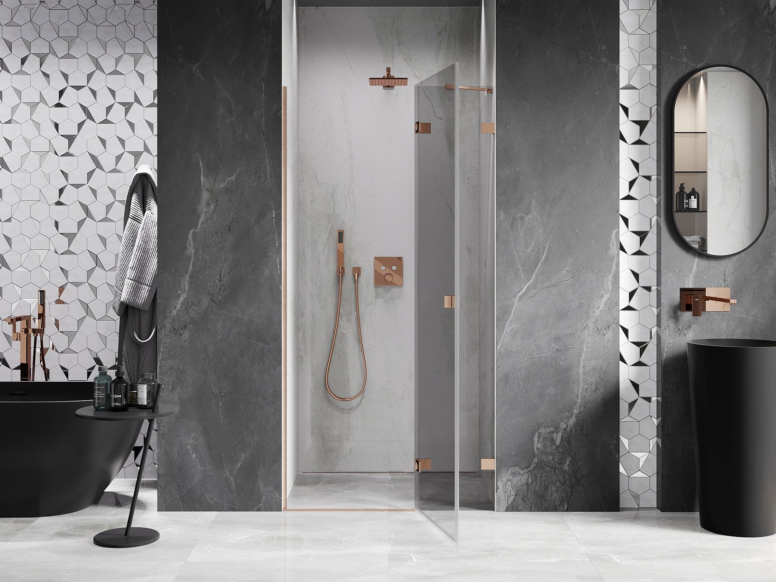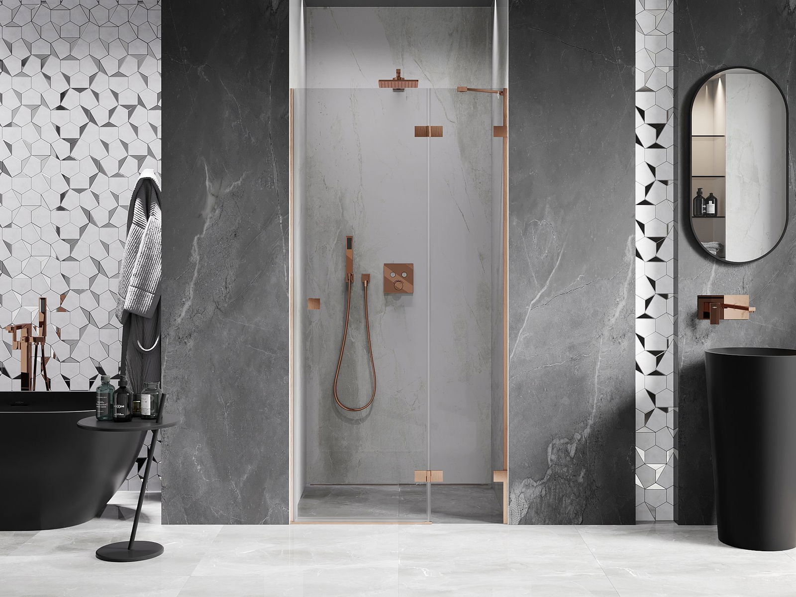 Mexen Lunar right hinged shower door 105 cm, transparent, brushed copper - 834-105-000-65-00-P