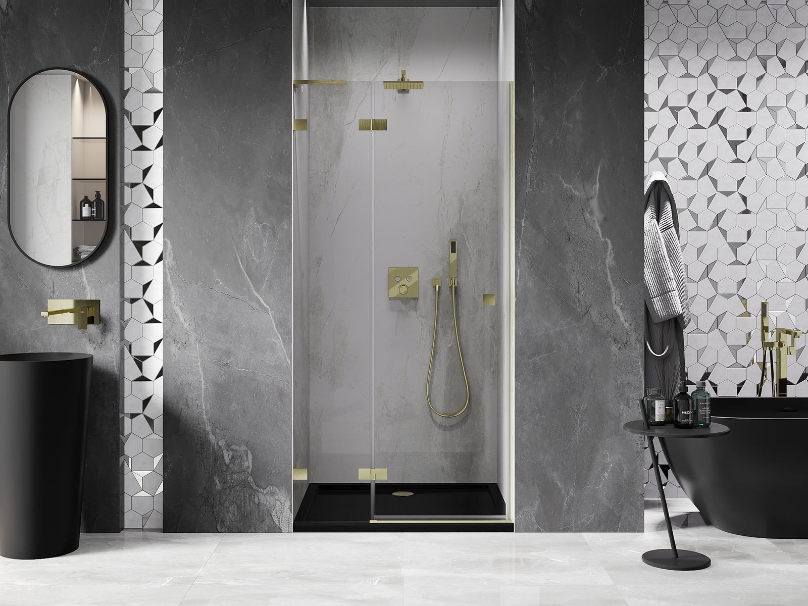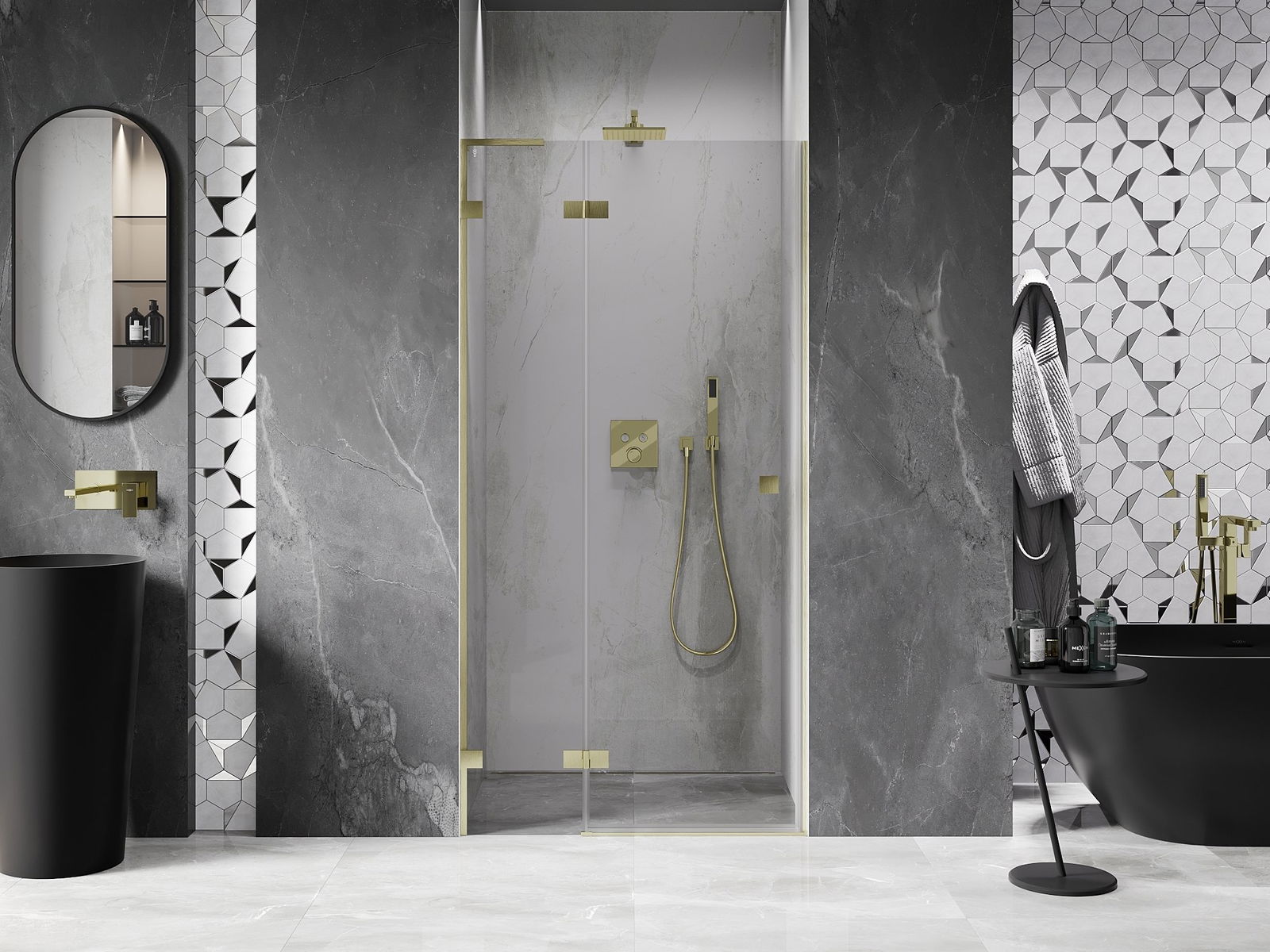 Mexen Lunar L Left Hinged Shower Door 75 cm, Transparent, Brushed Gold - 834L-075-000-55-00-L