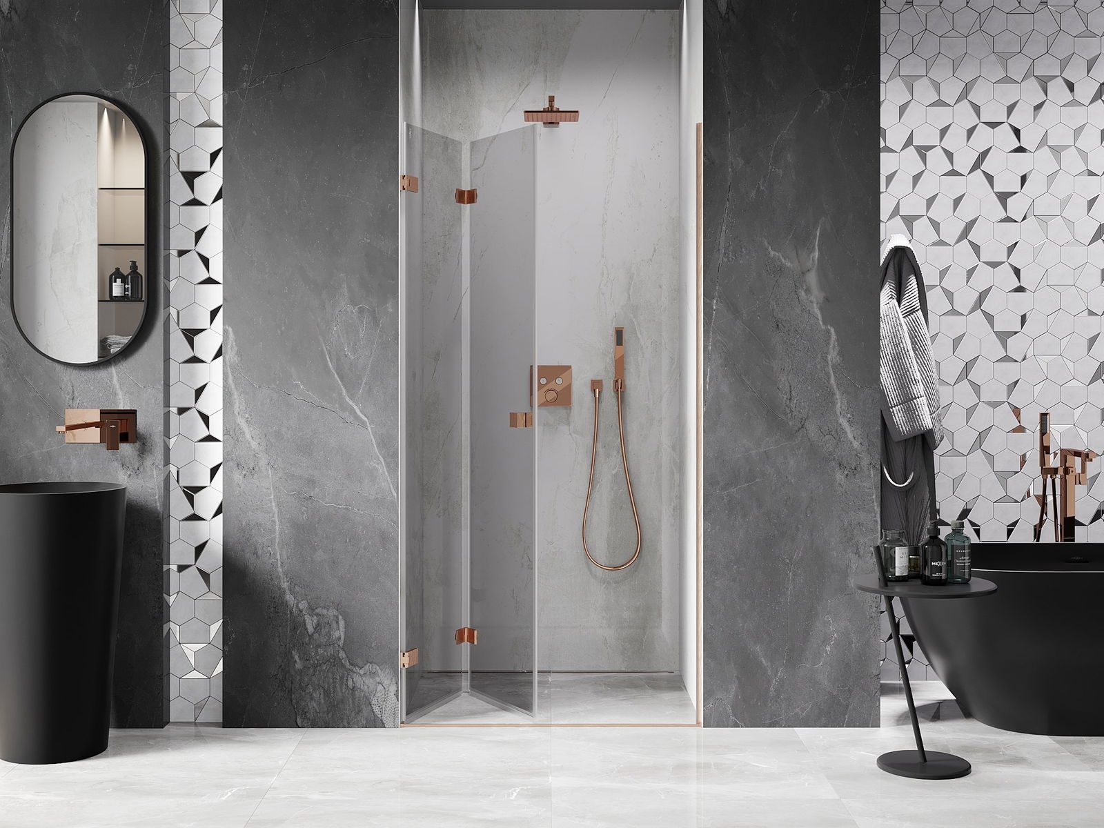 Mexen Lunar-F folding shower door left 85 cm, transparent, brushed copper - 836-085-000-65-00-L