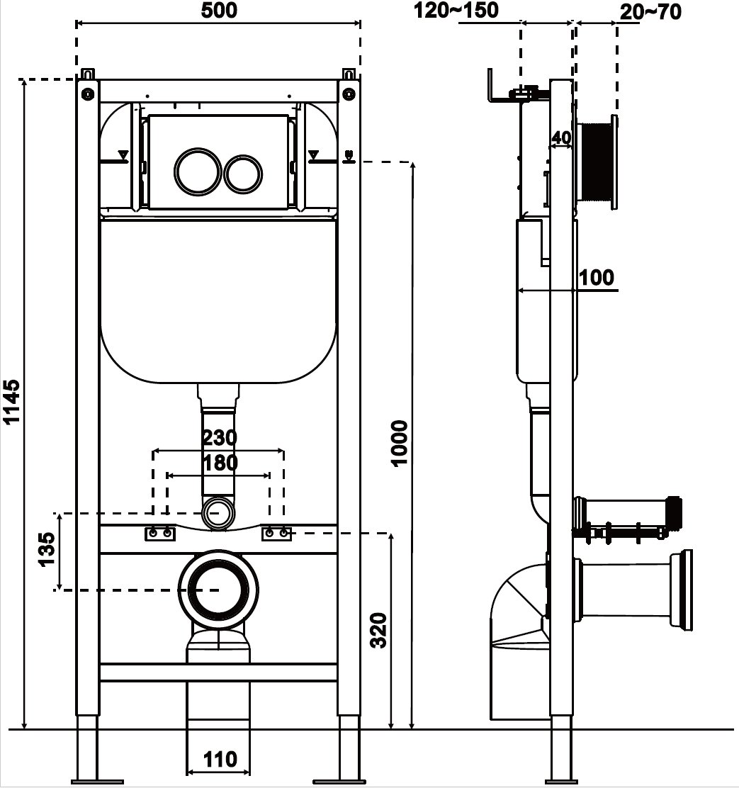 For hanging toilet bowl with hole spacing of 18 cm or 23 cm