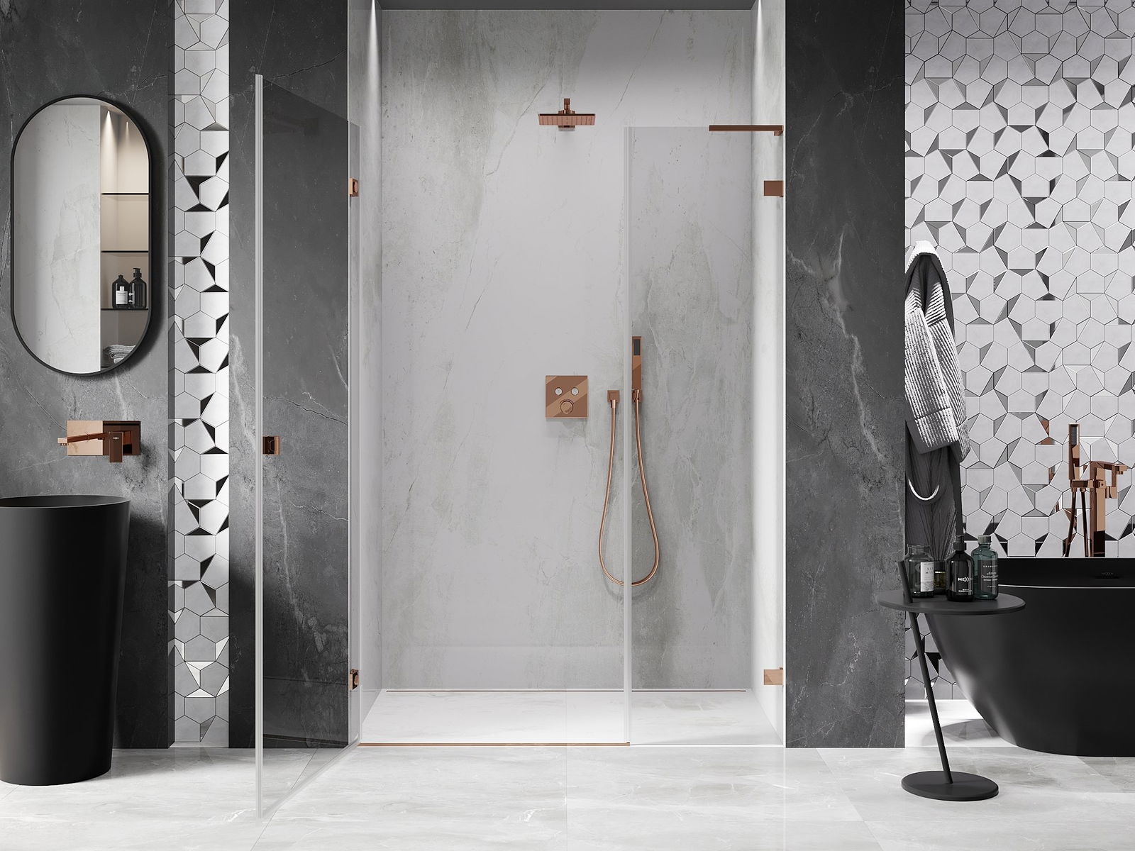 Mexen Lunar-B L left hinged shower door 120 cm, transparent, pink gold - 832SL-120-050-60-00-L