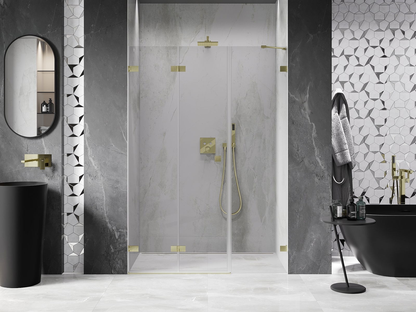 Mexen Lunar-F folding shower door left 120 cm, transparent, brushed gold - 836S-120-050-55-00-L