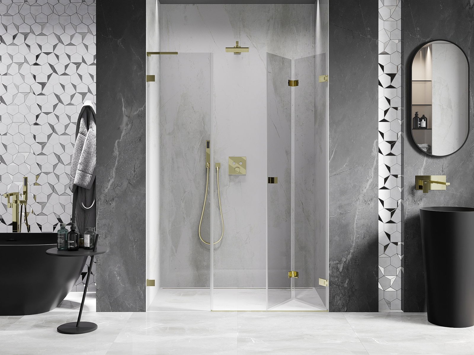 Mexen Lunar-F L 140 cm Right Folding Shower Door, Transparent, Gold - 836SL-140-050-50-00-P