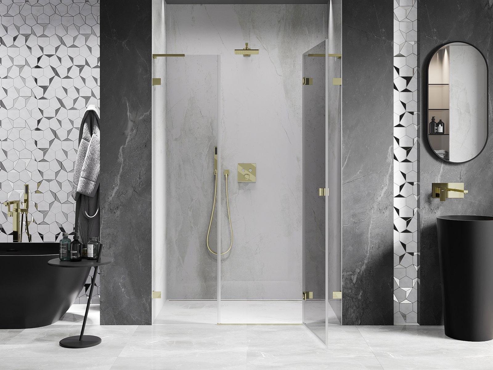 Mexen Lunar L right-hinged shower door 130 cm, transparent, gold - 834SL-130-050-50-00-P