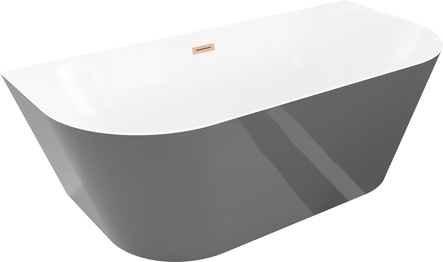 Mexen Oval Slim wall-mounted freestanding bathtub 170 x 80 cm, white/grey, brushed copper overflow - 52661708062-65