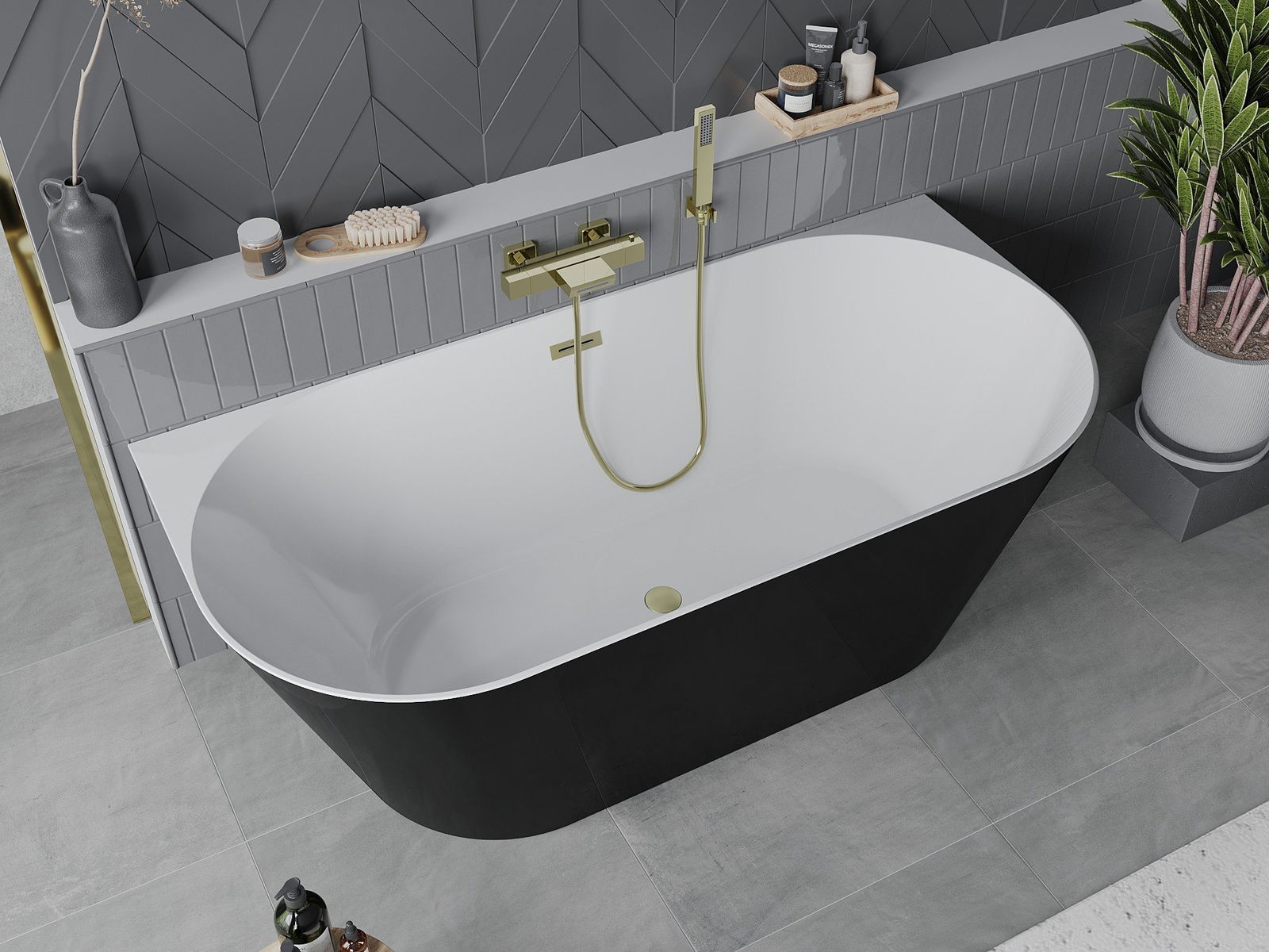 Mexen Oval Slim freestanding wall-adjacent bath 170 x 80 cm, white/black, brushed gold overflow - 52661708075-55