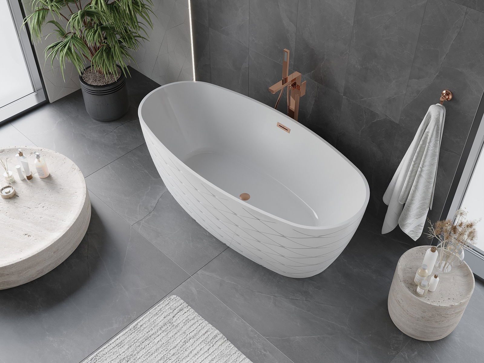 This is a modern material combining an elegant appearance with high durability. It is resistant to mechanical damage, easy to clean, and pleasant to the touch. The transparent form and thin rim of the bathtub add lightness and unique character, creating an impactful accent in bathroom design.