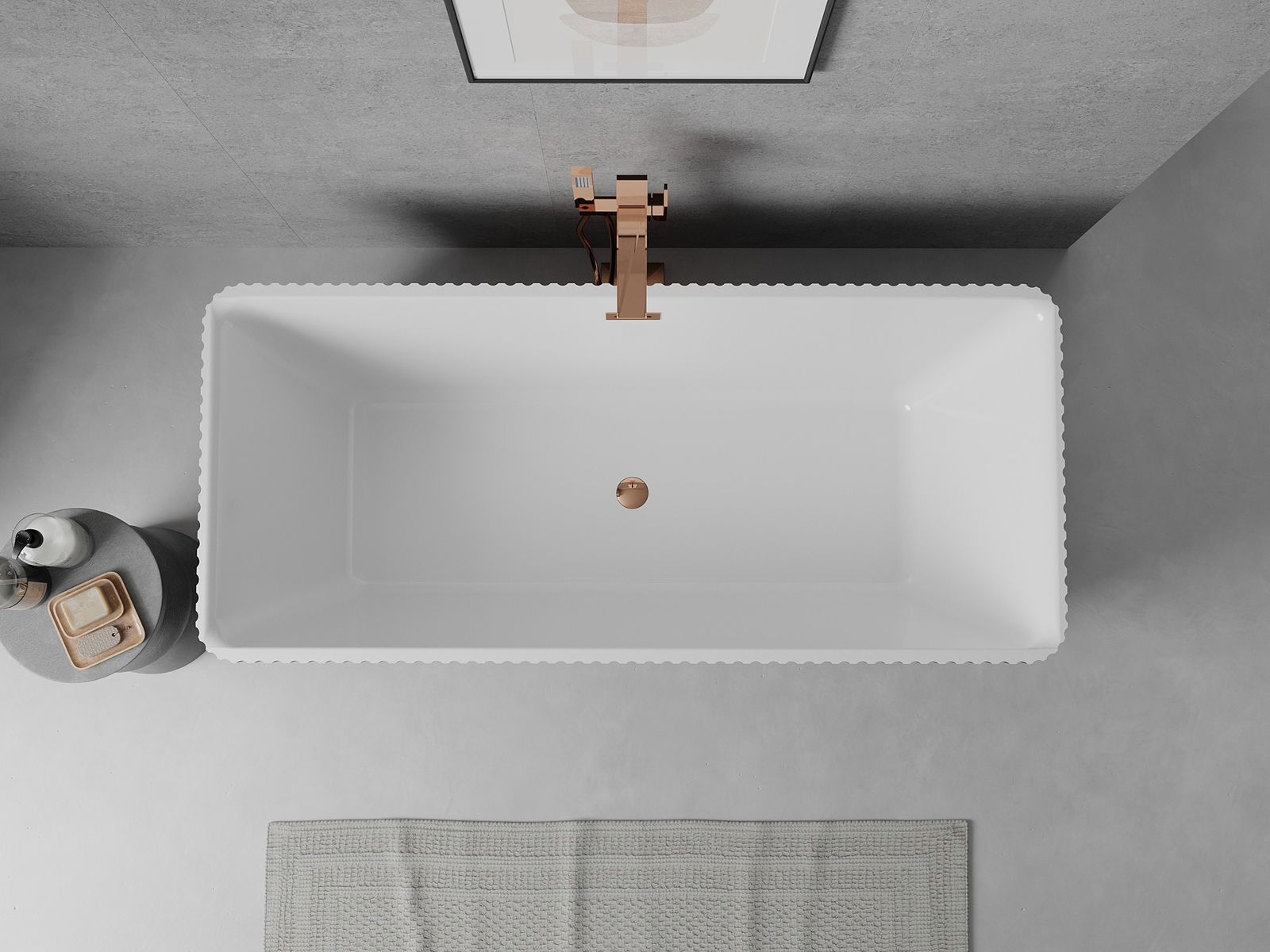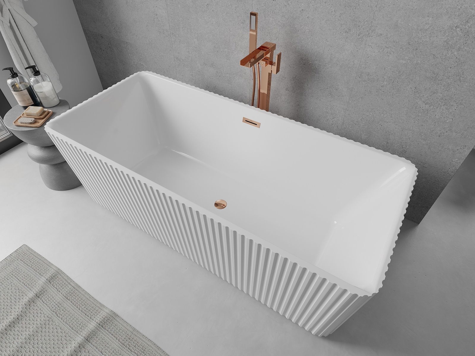 Mexen Nila freestanding fluted bathtub 170 x 75 cm, white, rose gold overflow - 52841708000-60