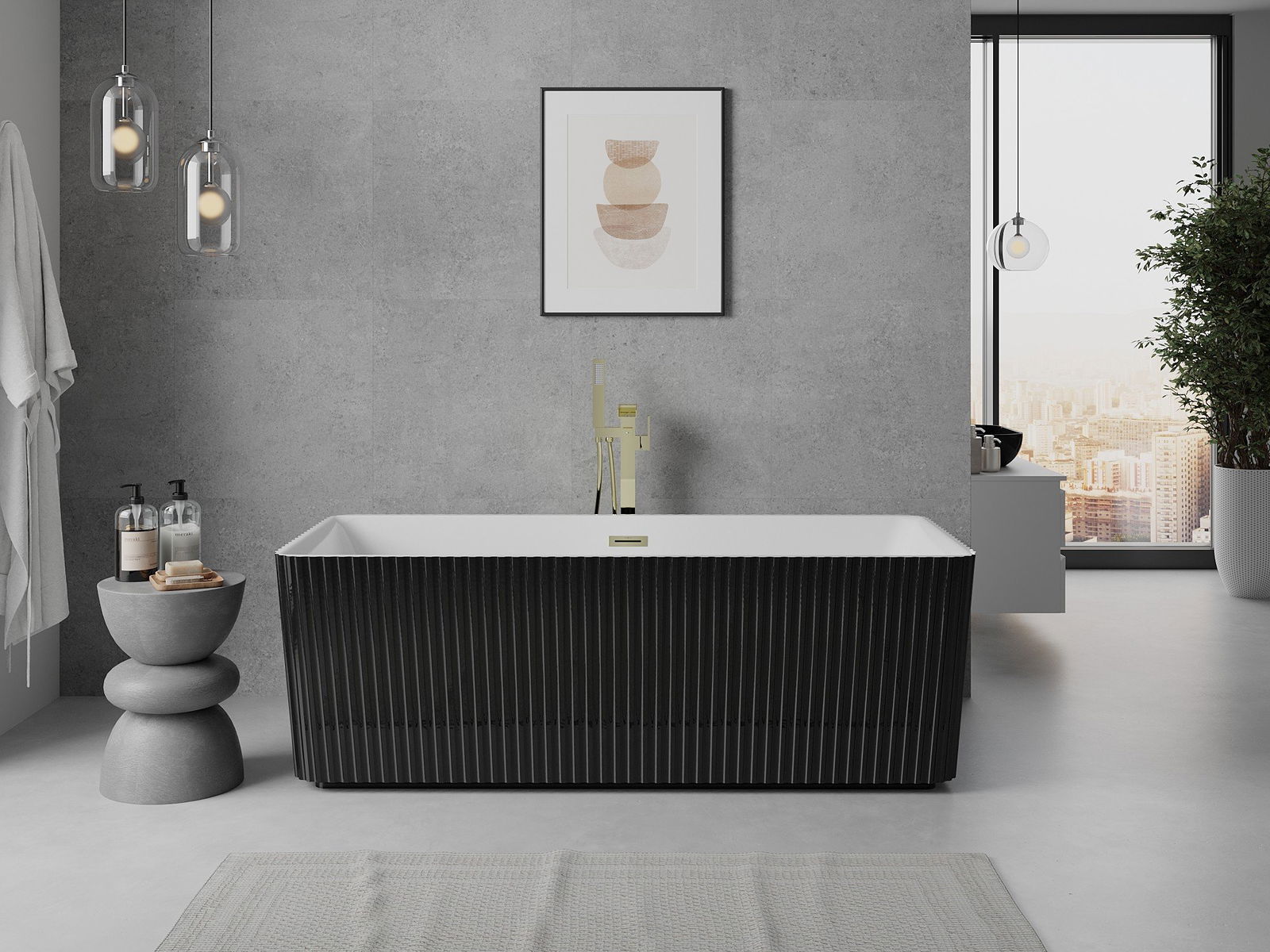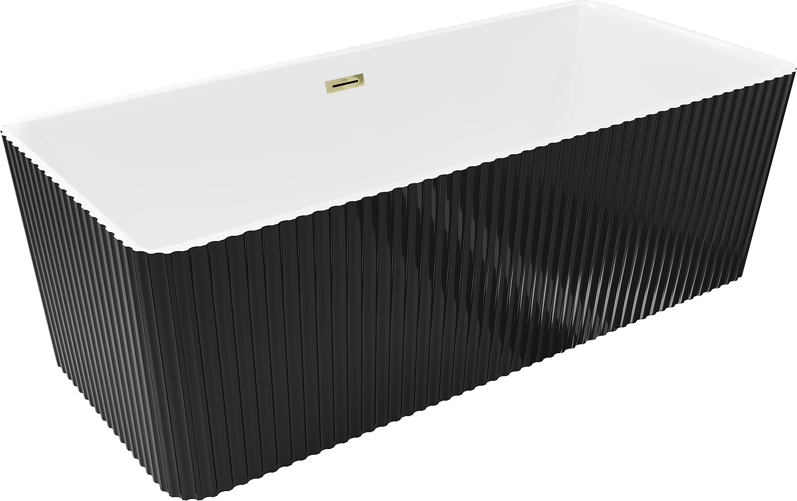 Mexen Nila freestanding ribbed bathtub 170 x 75 cm, white/black, gold overflow - 52841708075-50