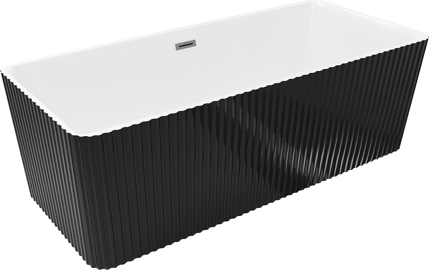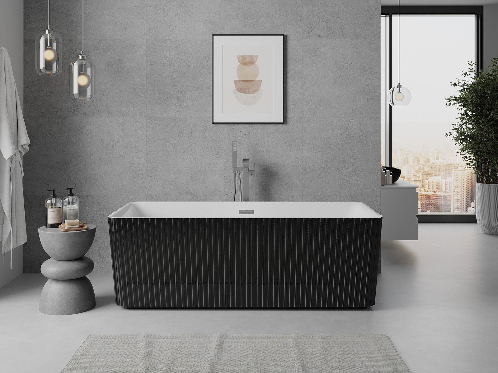 Mexen Nila freestanding fluted bath 170 x 75 cm, white/black, gun metal overflow - 52841708075-95