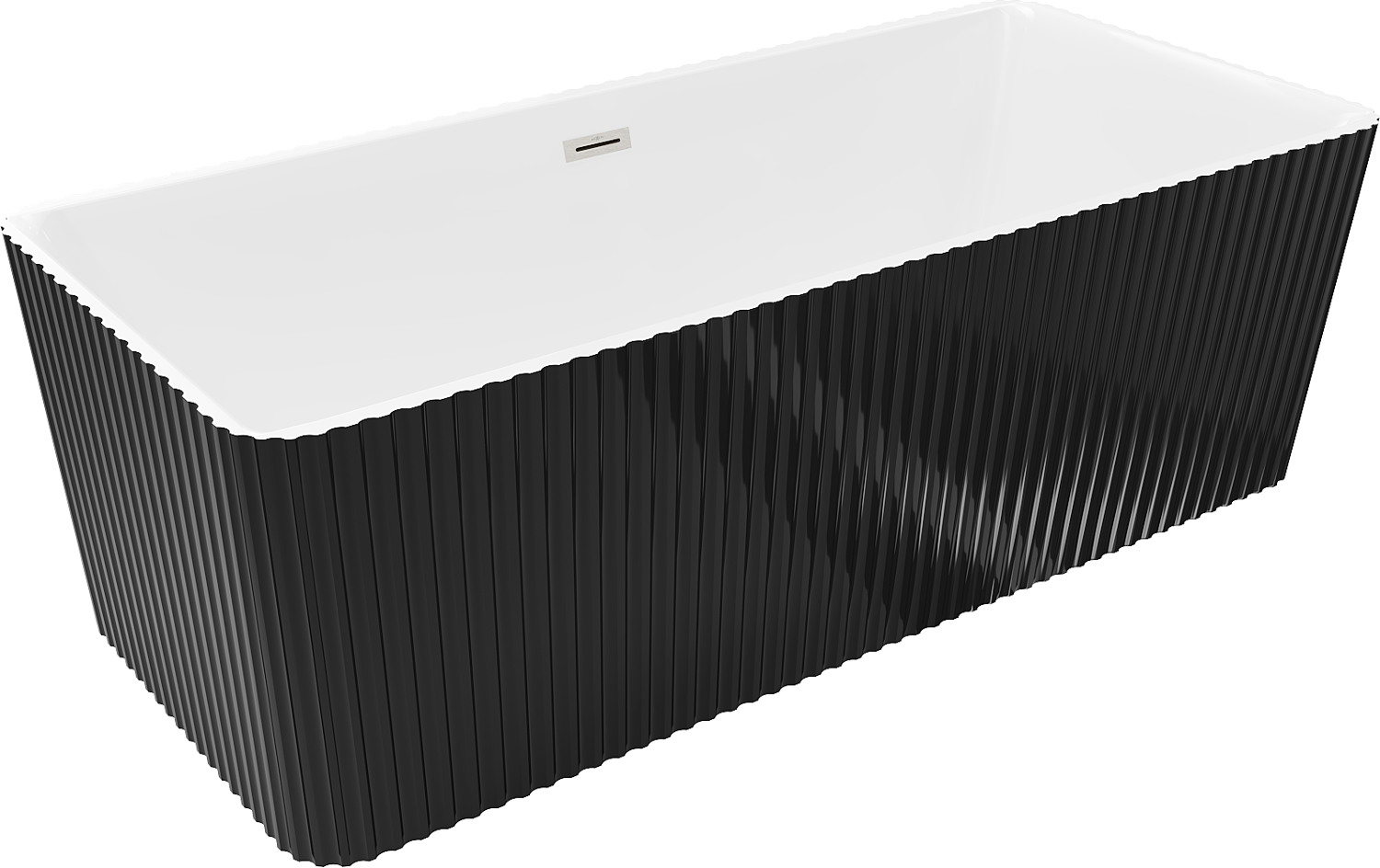 Mexen Nila freestanding fluted bath 170 x 75 cm, white/black, brushed nickel overflow - 52841708075-97