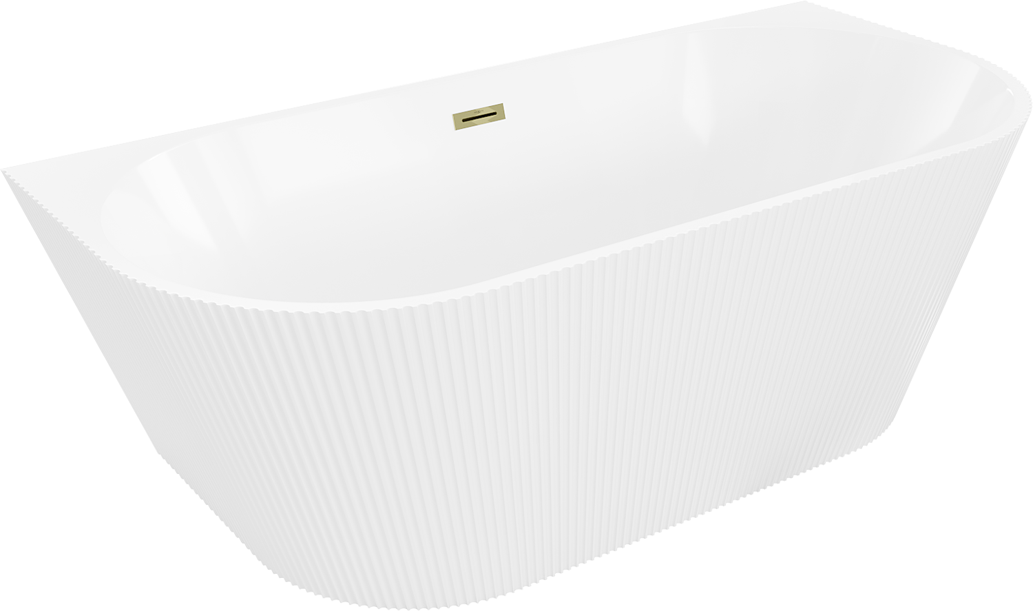 Mexen Oris freestanding ribbed bathtub 150 x 75 cm, white, overflow gold- 52871507500-50