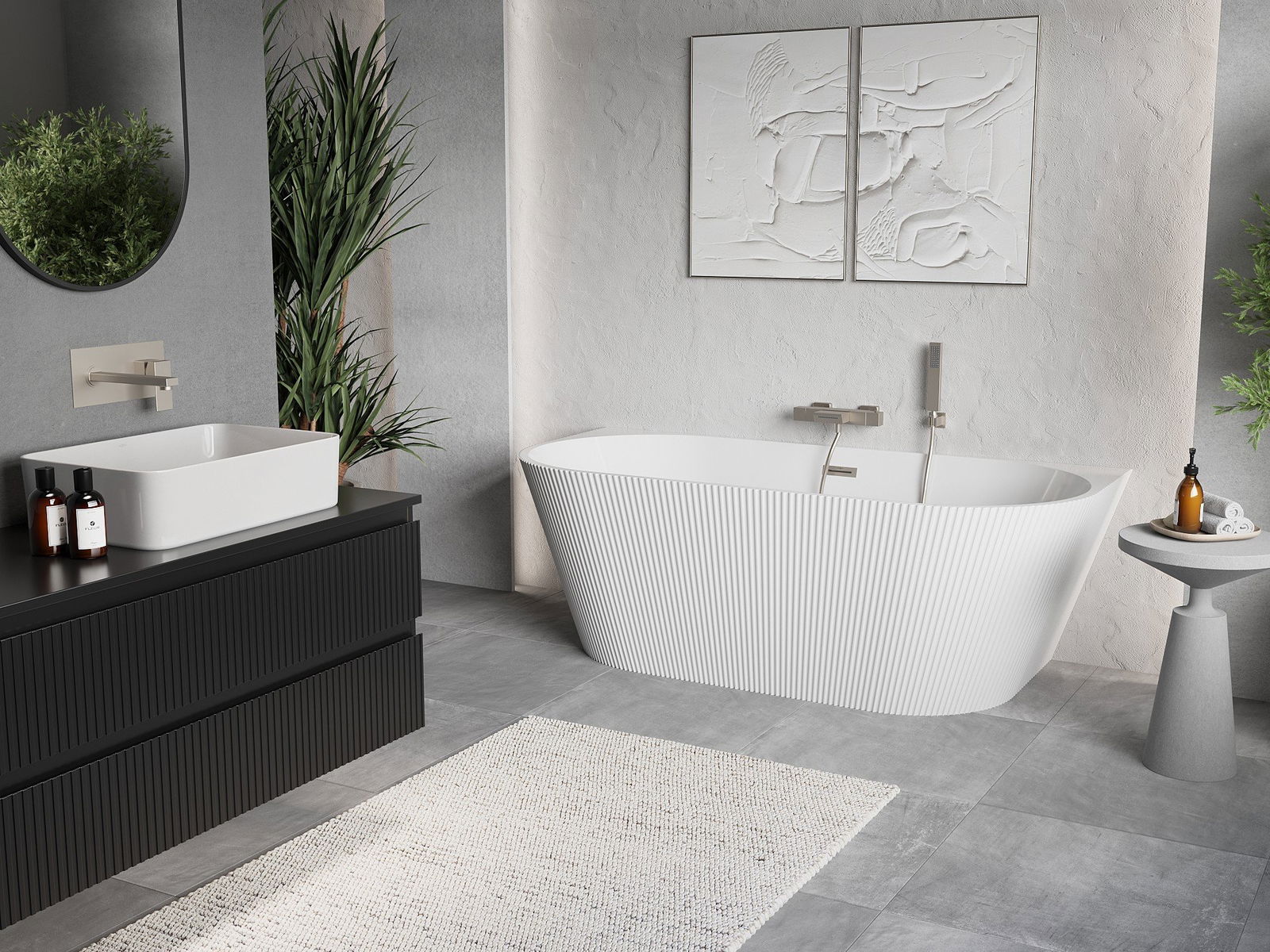 Mexen Oris freestanding against-the-wall ribbed bath 150 x 75 cm, white, brushed nickel overflow - 52871507500-97