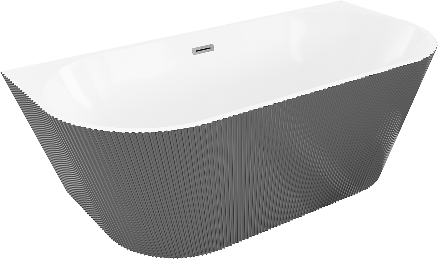 Mexen Oris freestanding wall-adjacent fluted bathtub 150 x 75 cm, white/grey, gun metal overflow - 52871507562-95