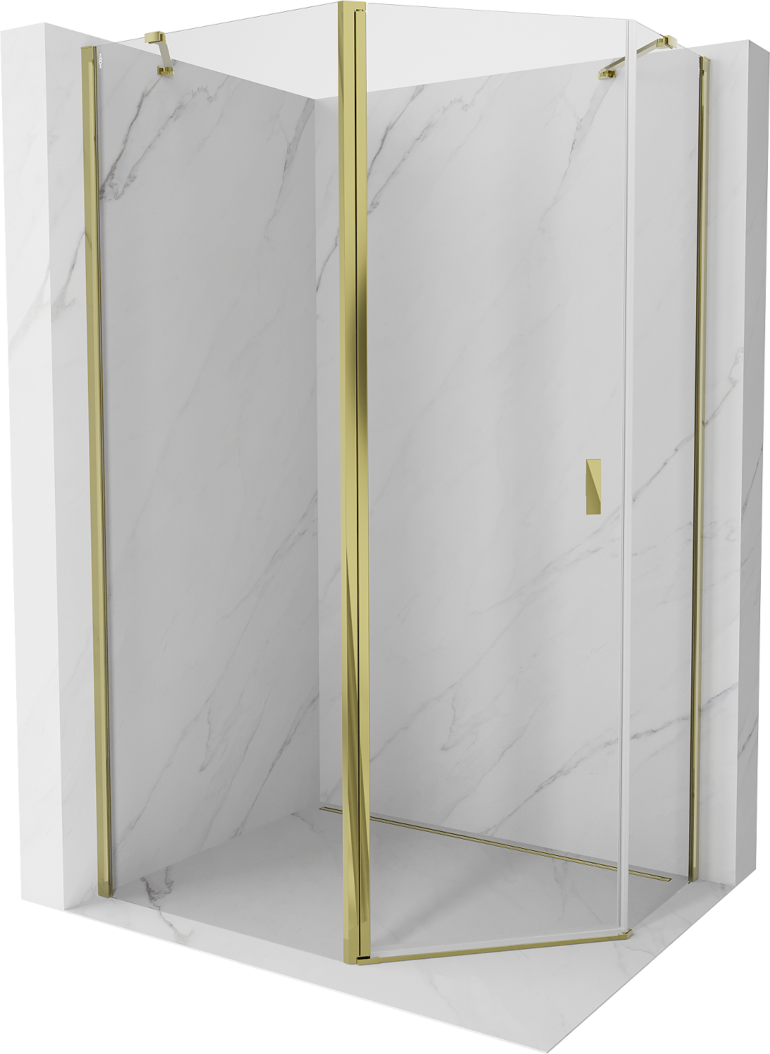 Mexen Mist asymmetrical pentagon shower enclosure 100 x 90 cm, transparent, gold - 8A8-100-090-50-00