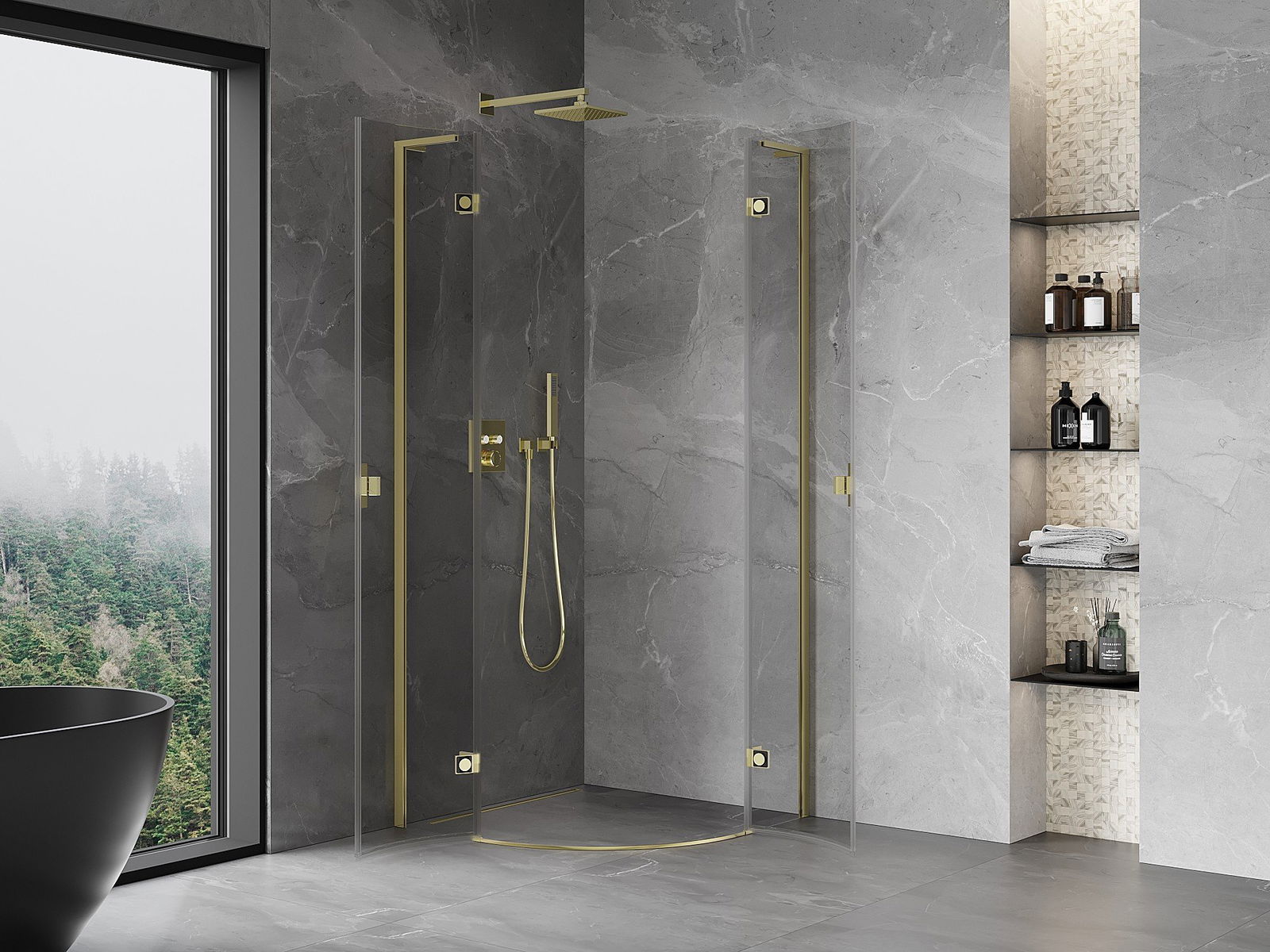 Mexen Mist L Semi-Circular Hinged Shower Enclosure 100 x 100 cm, Transparent, Gold - 8A33L-100-100-50-00