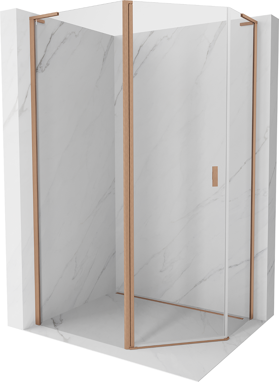 Mexen Mist L asymmetric pentagonal hinged shower cabin 100x80 cm, transparent, brushed copper - 8A8L-100-080-65-00