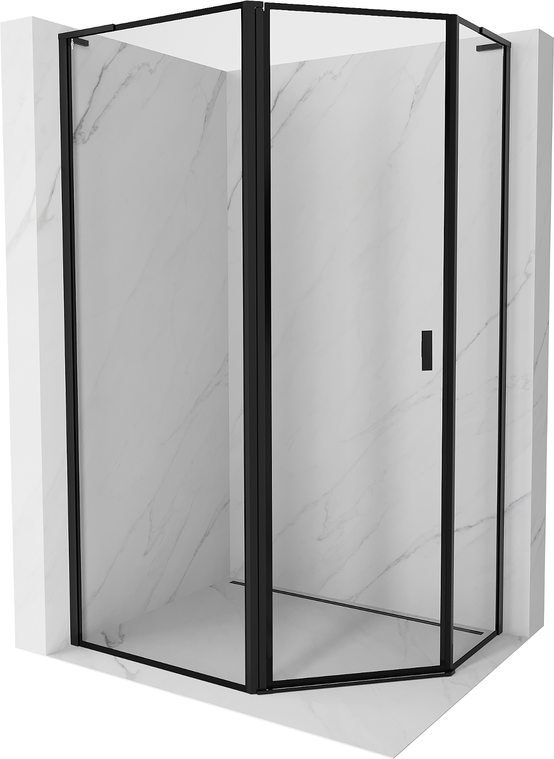 Mexen Mist L pentagonal asymmetrical left-hinged shower cabin 90 x 80 cm, black frame, black - 8A8L-090-080-70-70-L