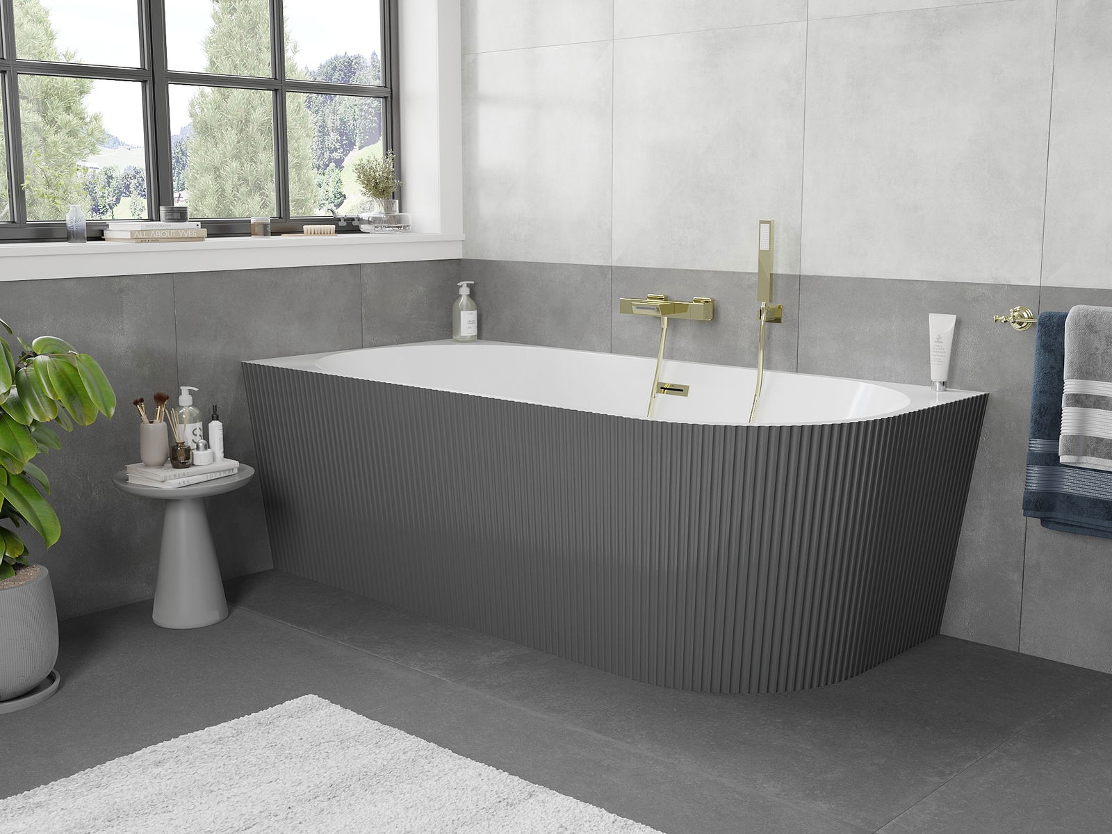 Mexen Silo freestanding corner left striated bath 150 x 75 cm, white/grey, gold overflow - 52891507562L-50