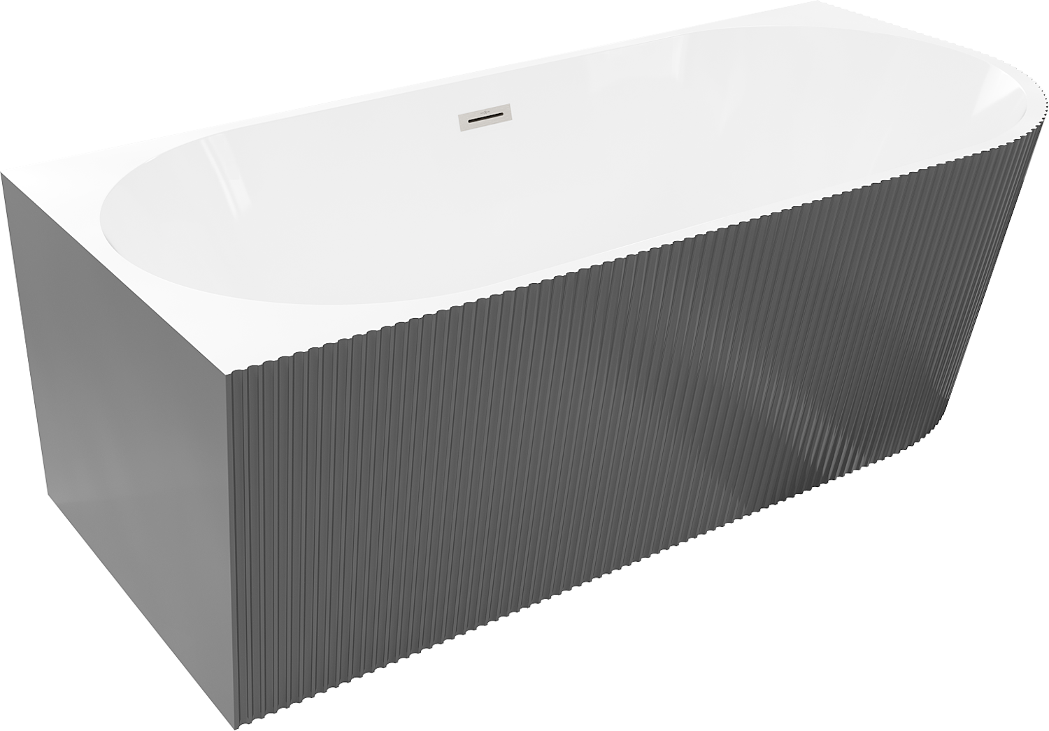 Mexen Silo freestanding corner left fluted bathtub 150 x 75 cm, white/grey, brushed nickel overflow - 52891507562L-97