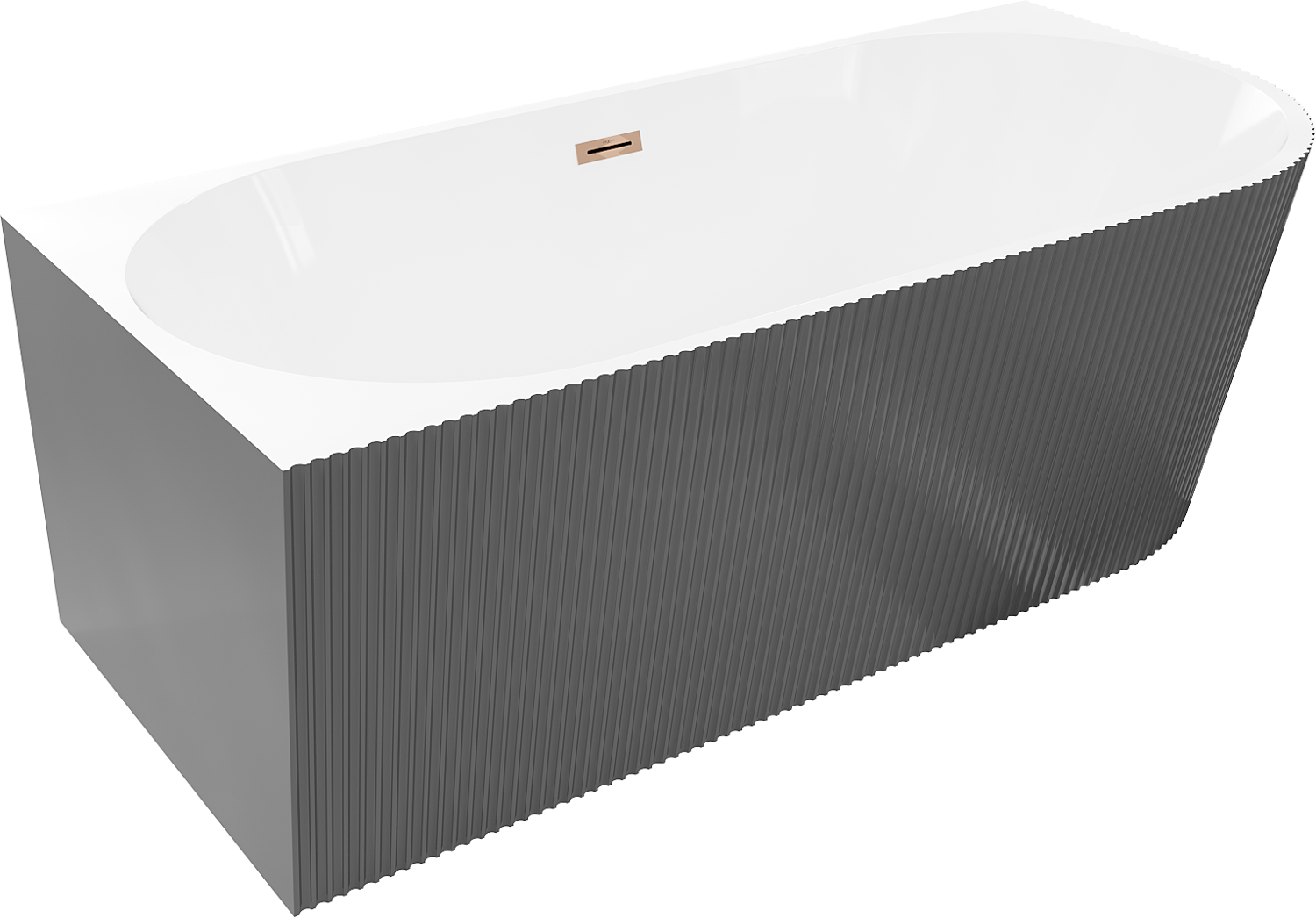 Mexen Silo Free-Standing Corner Bath Left Grooved 170 x 80 cm, White/Grey, Overflow Rose Gold - 52891708062L-60