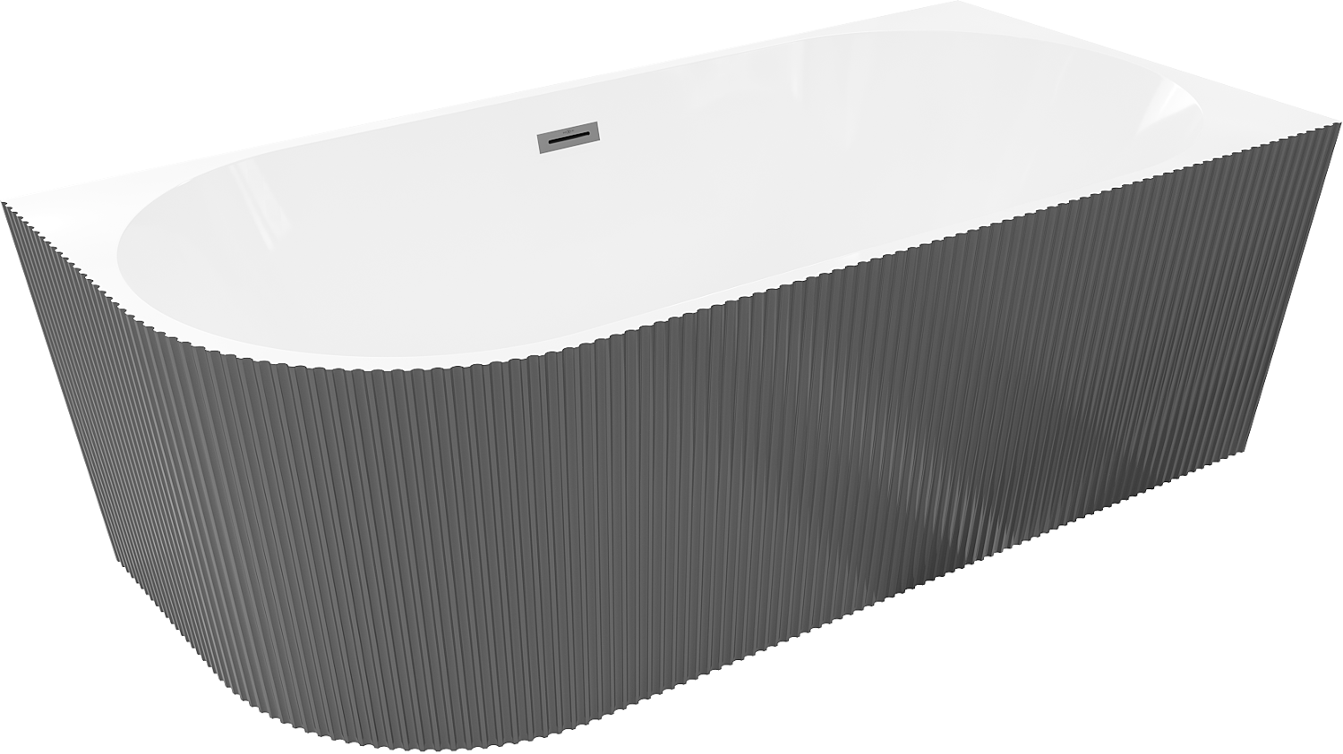 Mexen Silo freestanding corner bath right grooved 150 x 75 cm, white/grey, gun metal overflow - 52891507562P-95