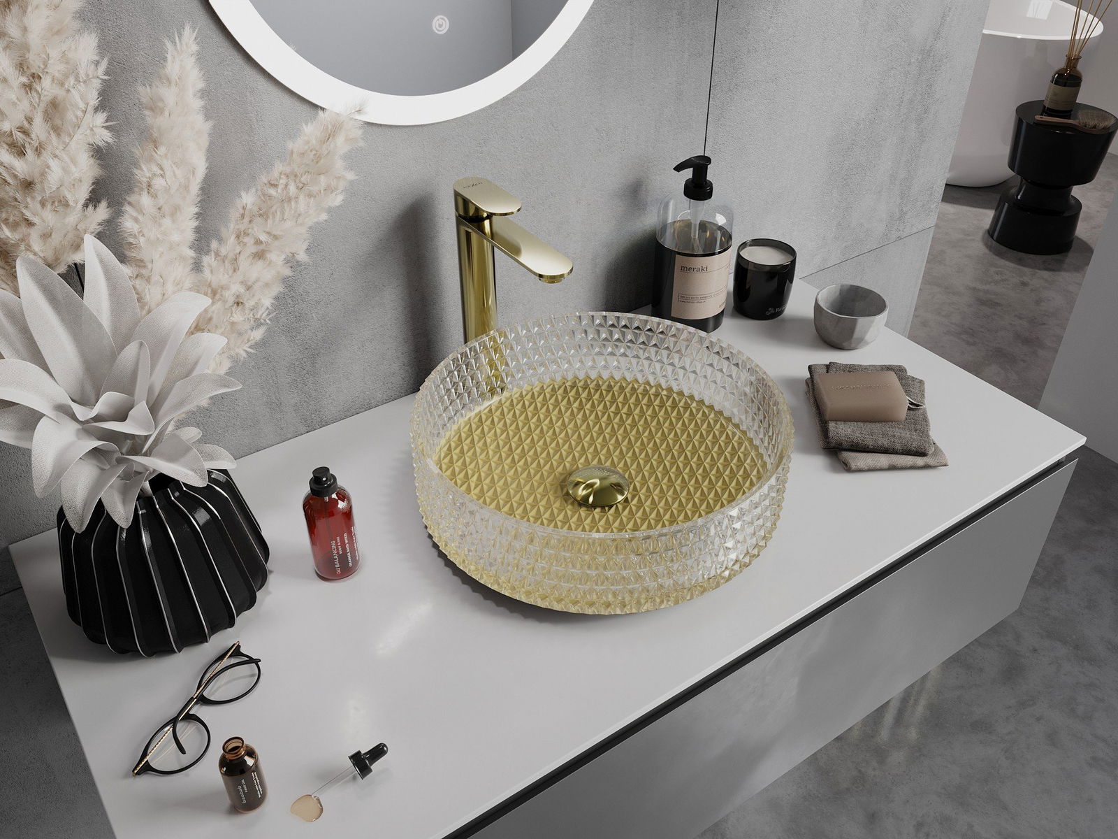Mexen Aura glass countertop washbasin 39 x 39 cm, transparent/gold - 24013951