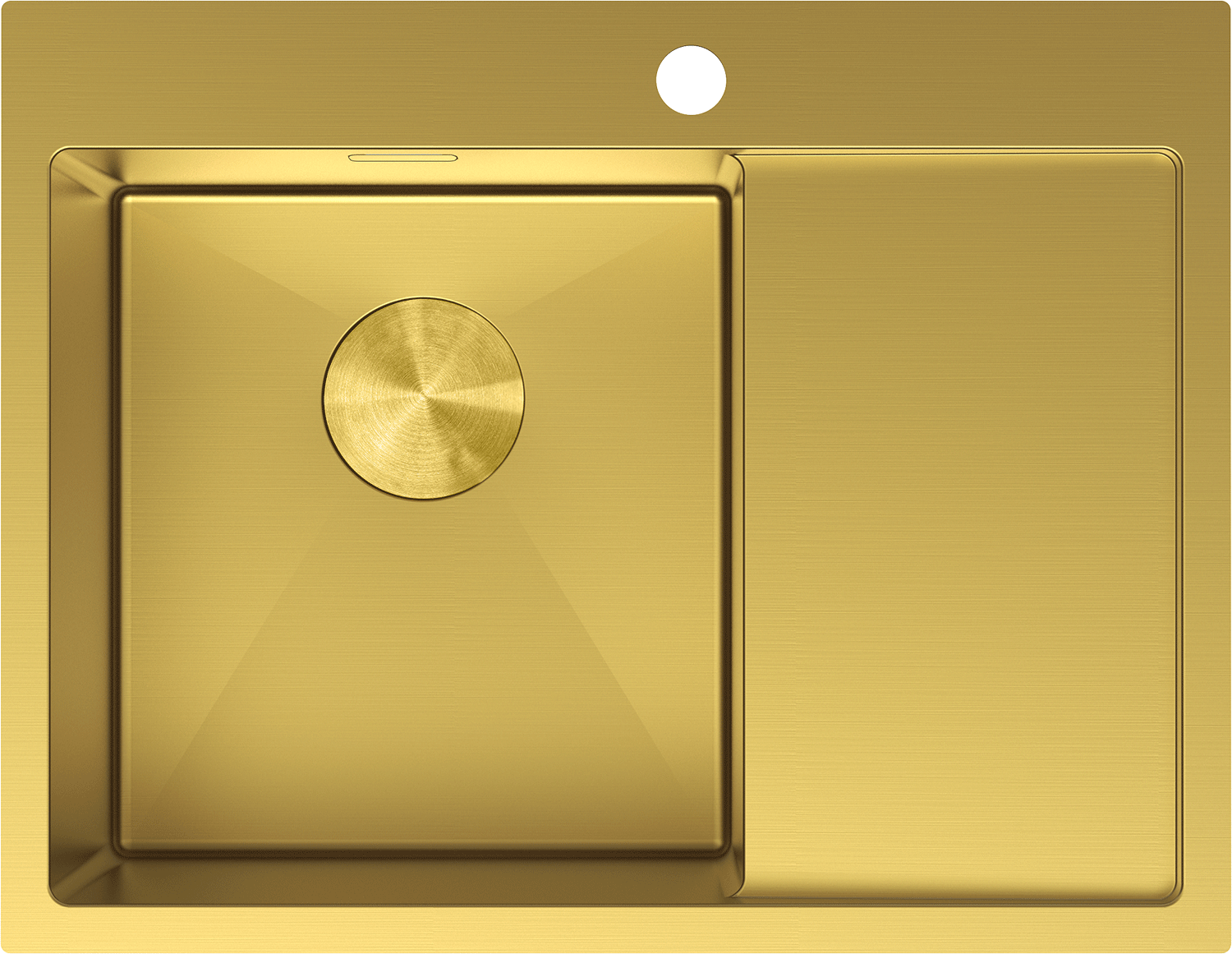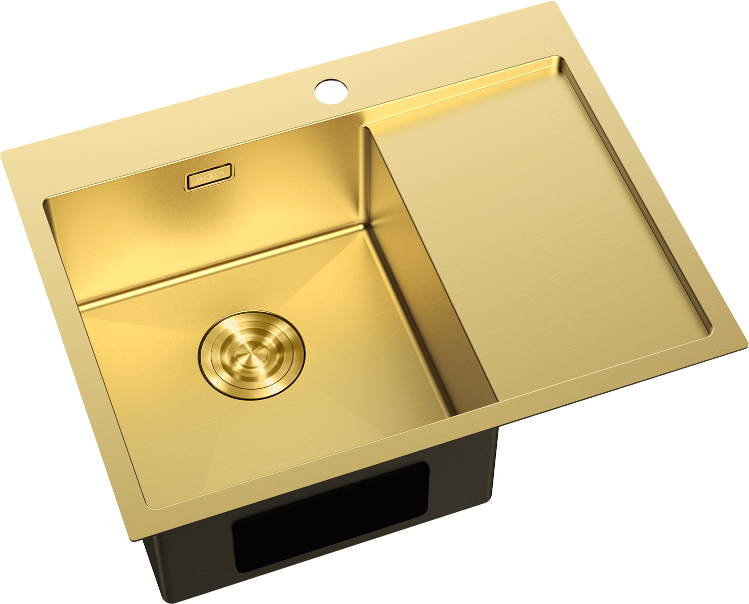 Mexen Exar steel sink, 1-bowl with left drainer 620 x 480 mm, gold - 6431621005L-55