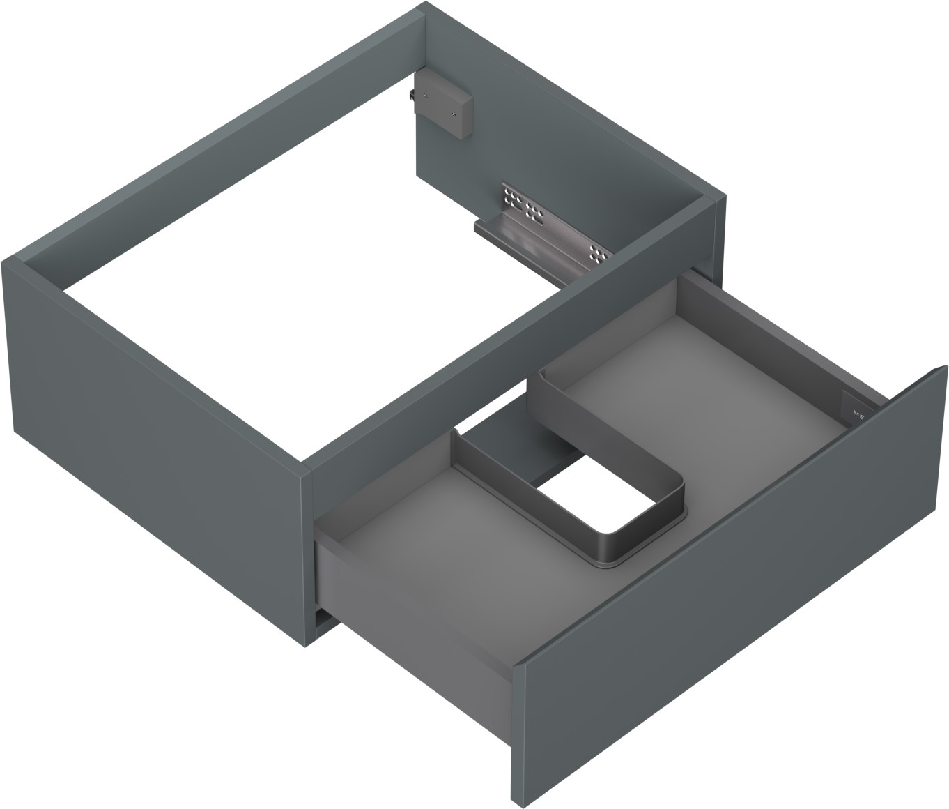 The cutout in the drawer is designed in such a way as to accommodate the siphon, which is essential in sink installations. This allows the furniture to be fully functional without having to give up drawer space for the installation.