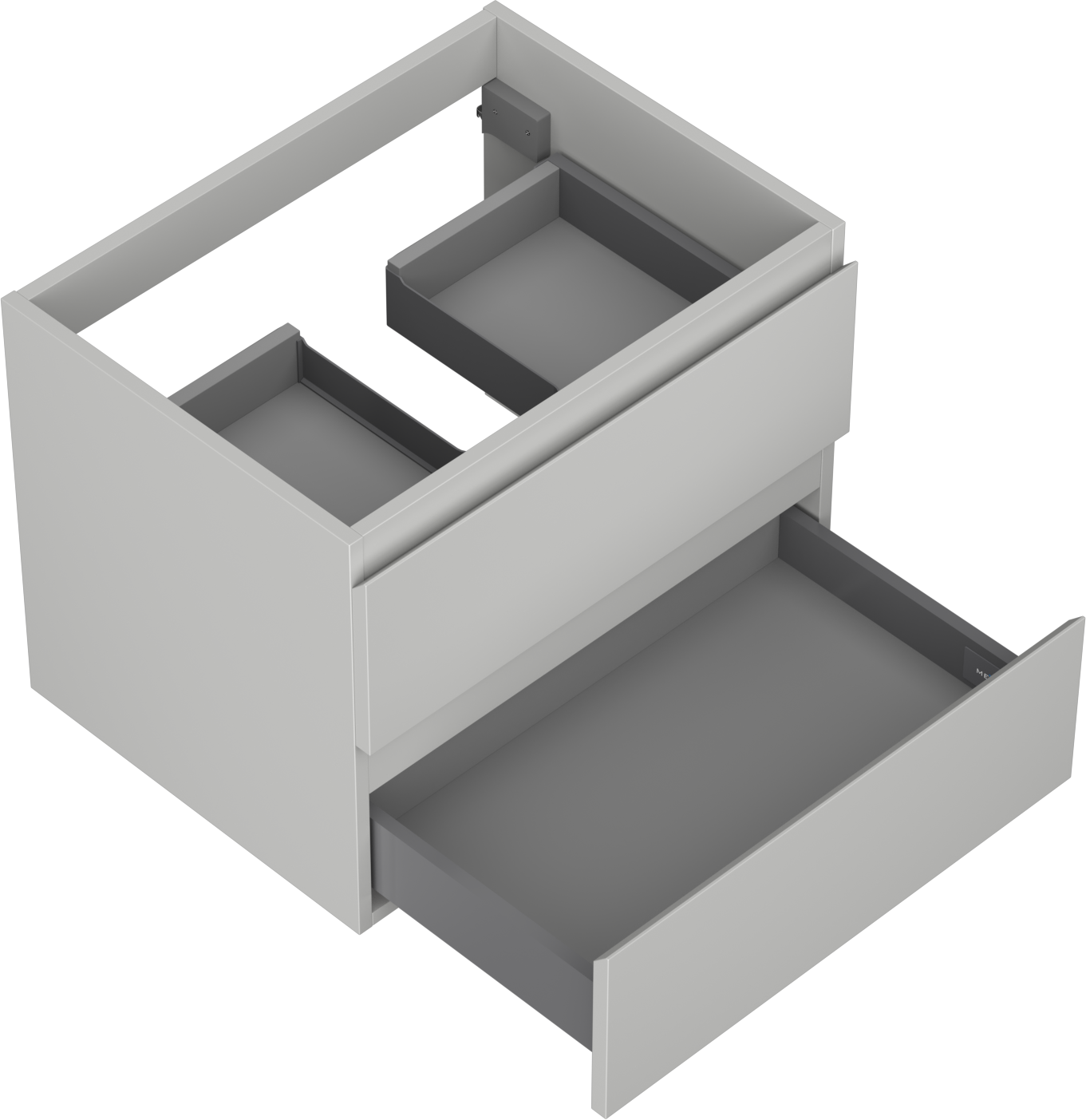 The cutout in the drawer is designed in such a way as to accommodate the siphon, which is essential in sink installations. This allows the furniture to be fully functional without having to give up drawer space for the installation.