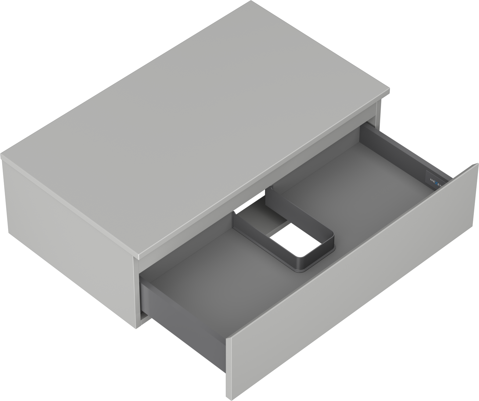 The cutout in the drawer is designed in such a way as to accommodate the siphon, which is essential in sink installations. This allows the furniture to be fully functional without having to give up drawer space for the installation.