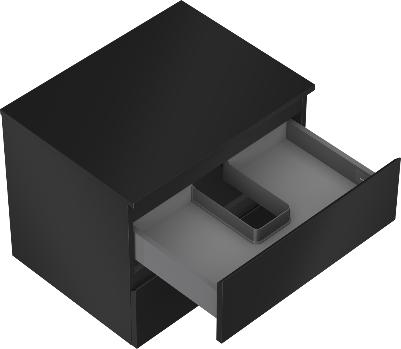 The cut-out in the drawer is designed to accommodate a siphon, which is essential for washbasin installations. This allows the furniture to be installed fully functionally, without having to sacrifice drawer space for the installation.